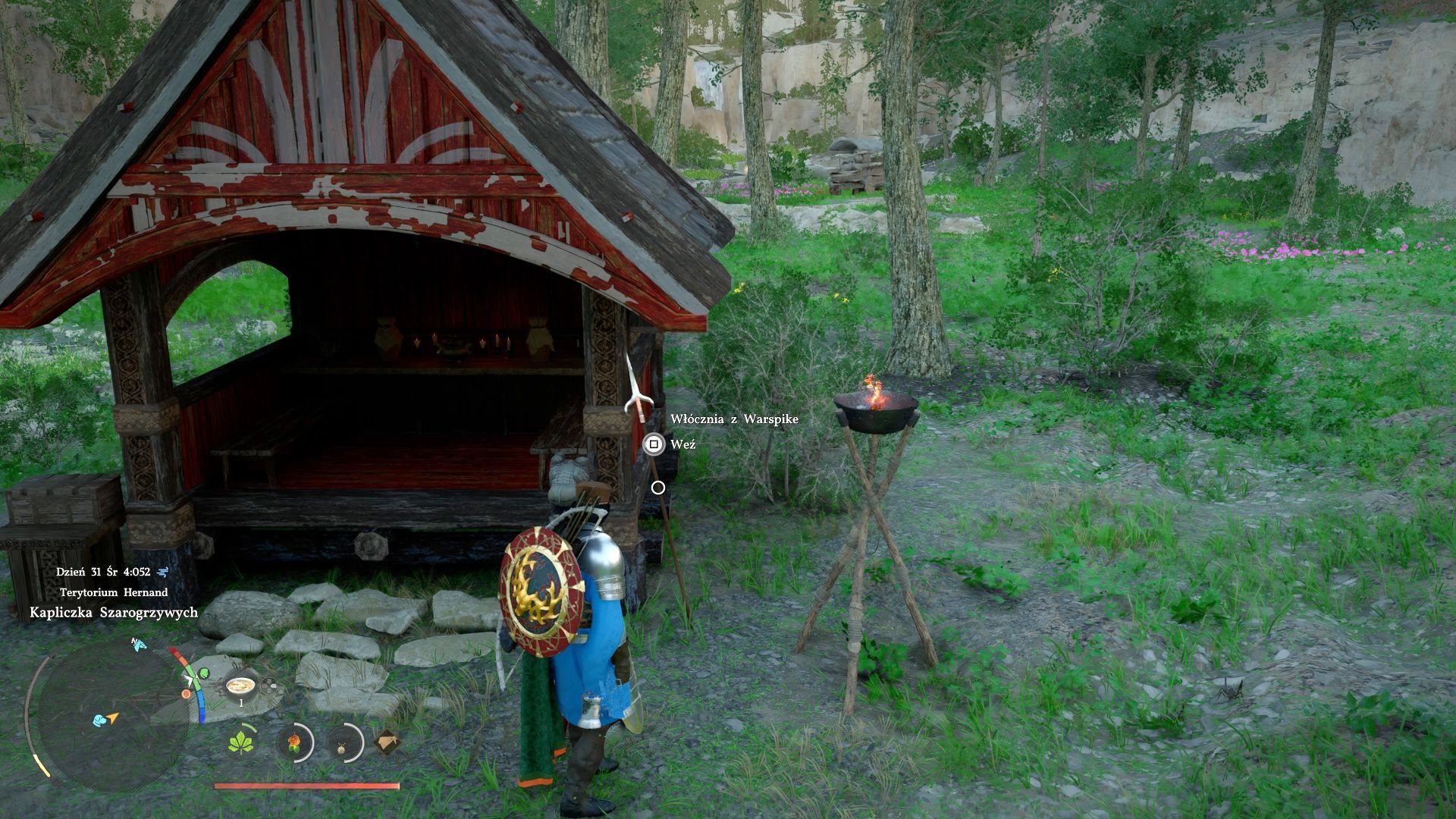 - Wewnątrz kapliczki jest zapieczętowany artefakt Otchłani, ale obok niej znajdziecie też włócznię z Warspike. Można ją dodać do inwentarza i nie będzie to potraktowane jako kradzież.