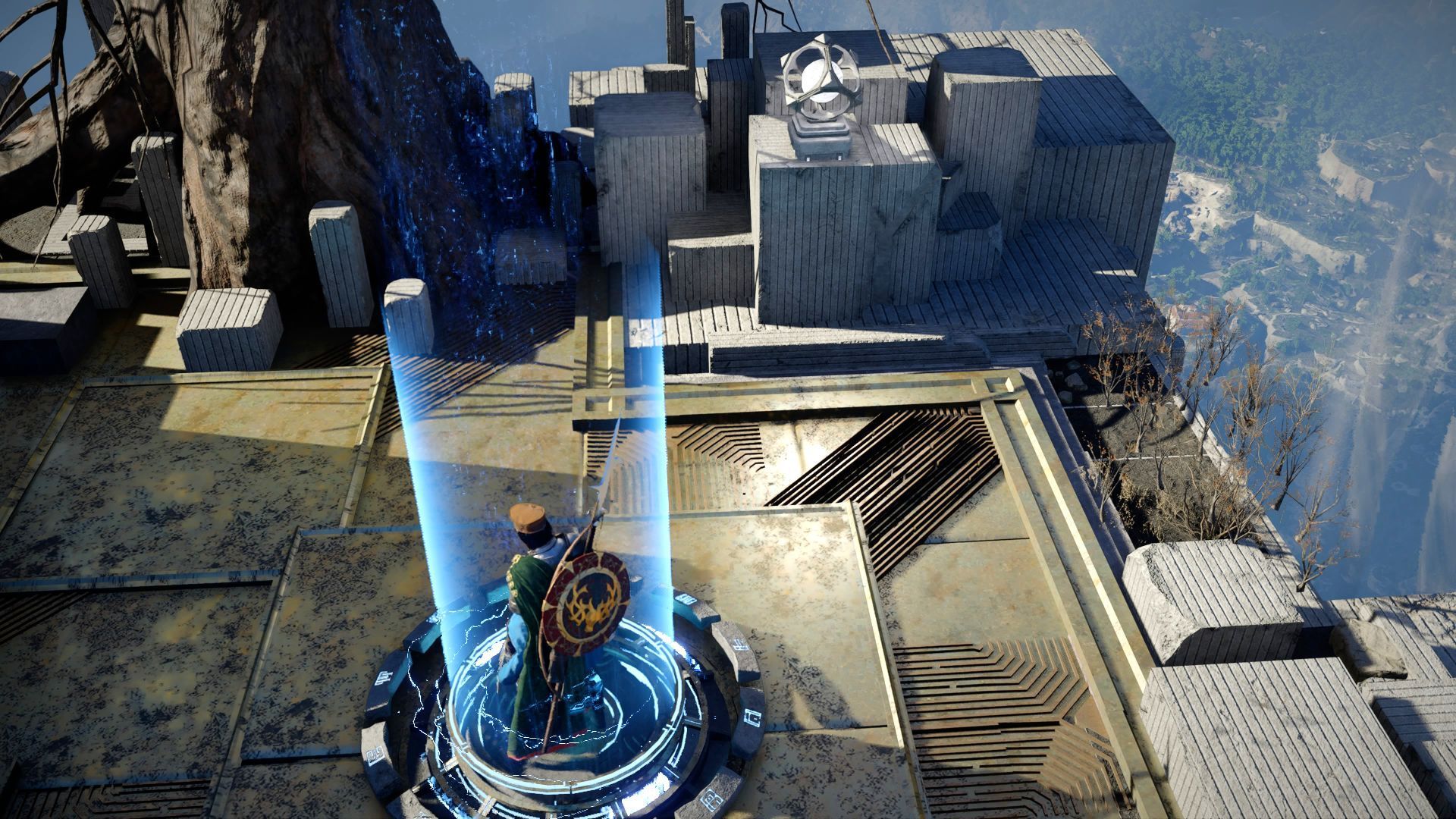 - Możecie już dotrzeć do dużego owalnego mechanizmu. Wdrapcie się na jego środek. Po znalezieniu się w pozycji z obrazka aktywujcie dłoń mocy, by uderzyć z dużą siłą w mechanizm i poprawnie go aktywować.