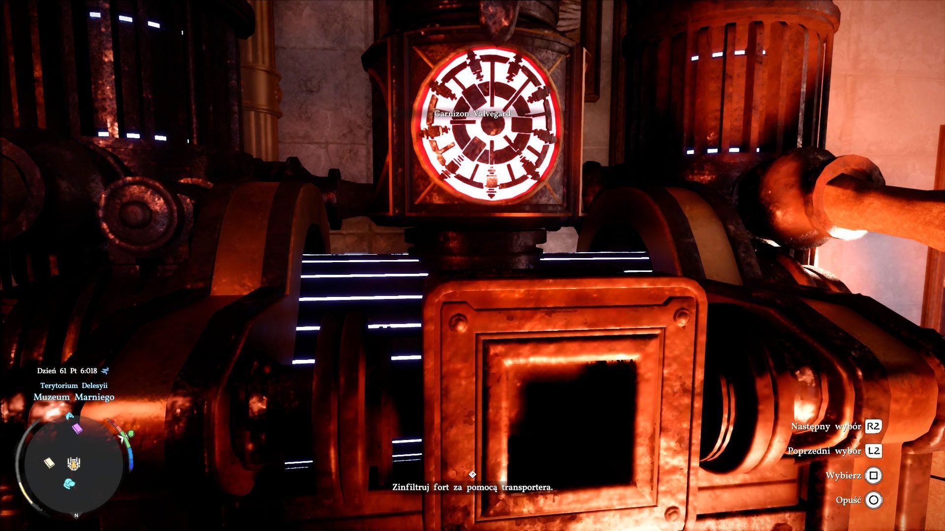 - Po znalezieniu się obok transportera wejdźcie w interakcję z okrągłym slotem, a następnie używajcie L2 / LT oraz R2 / RT żeby wybrać Garnizon Valvegard z listy lokacji, do których Kliff może się teleportować.