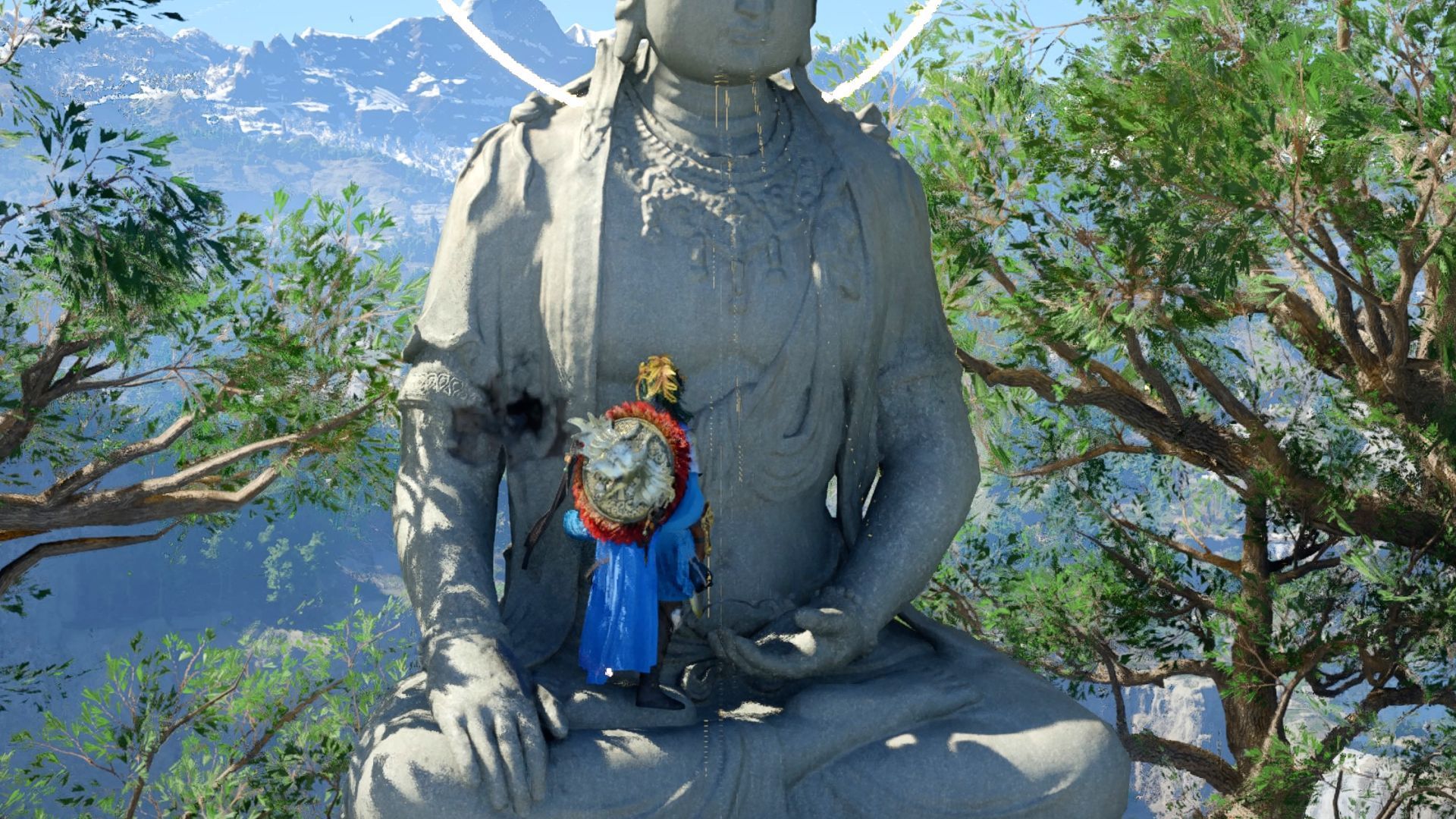 - Poprawne ułożenie dłoni dla pierwszego posągu pokazuje powyższy obrazek. Zaliczenie pierwszej zagadki załączy krótką cut-scenkę ze zmian w otoczeniu i będziecie mogli wyruszyć do drugiego posągu.