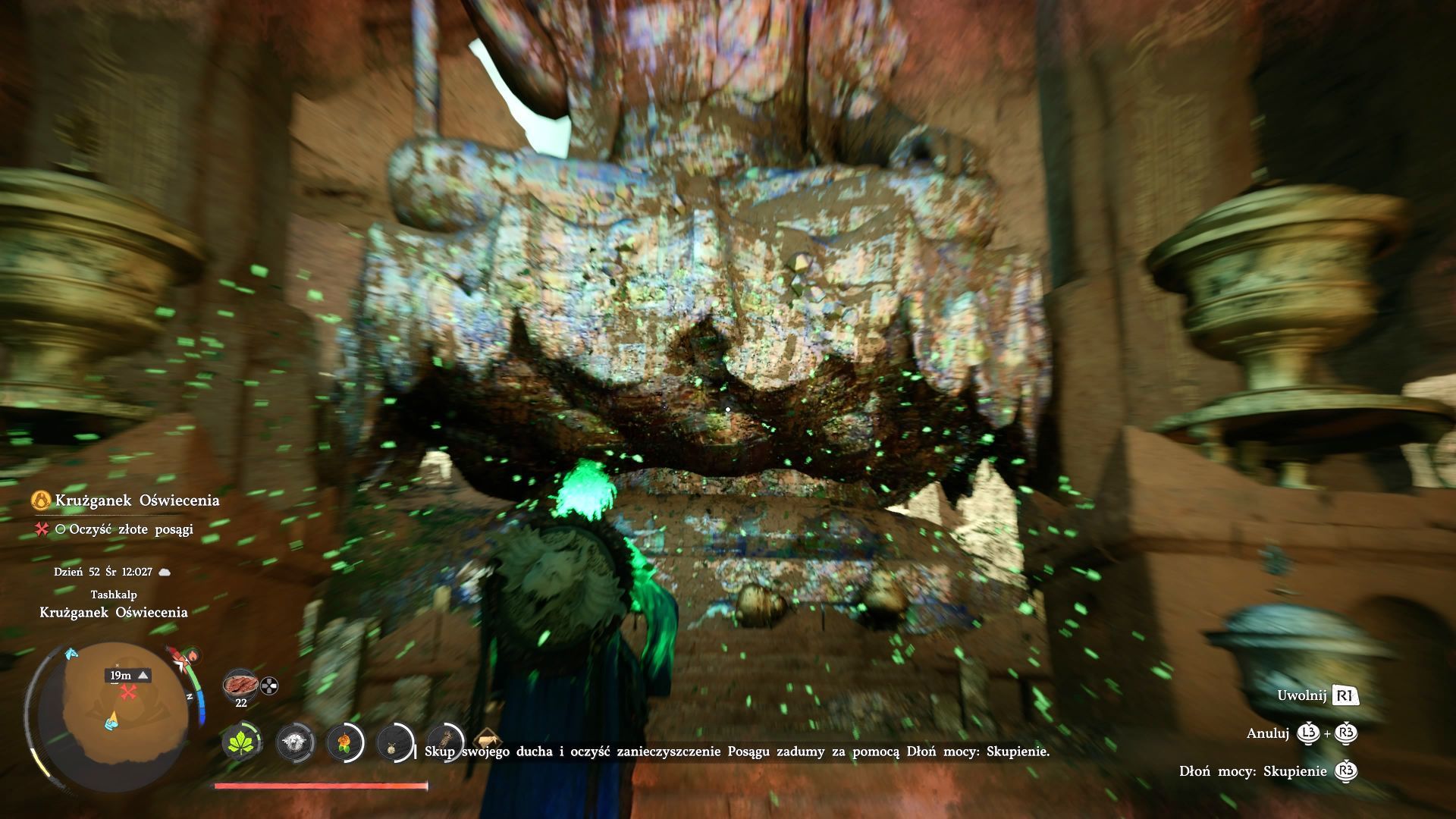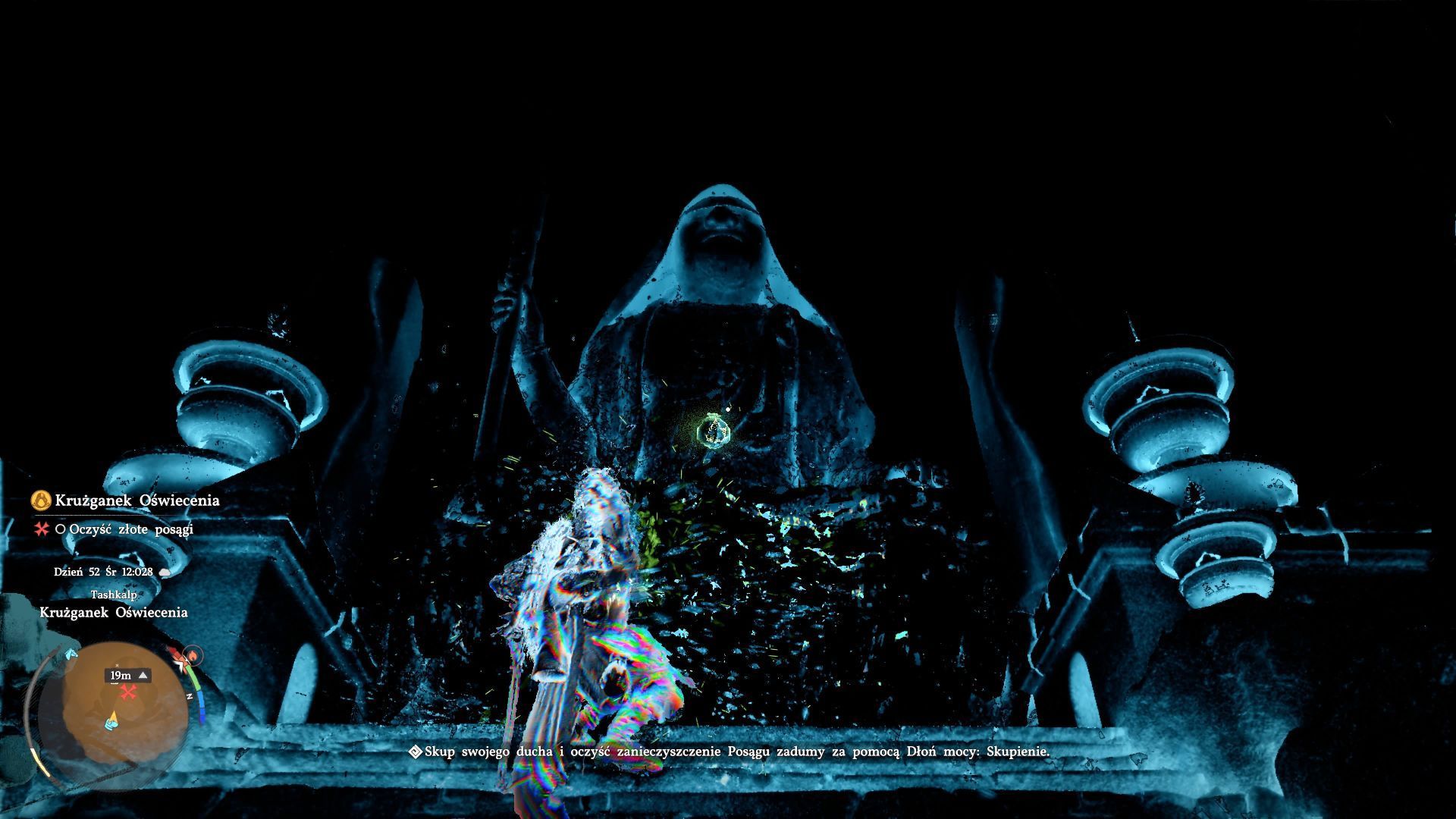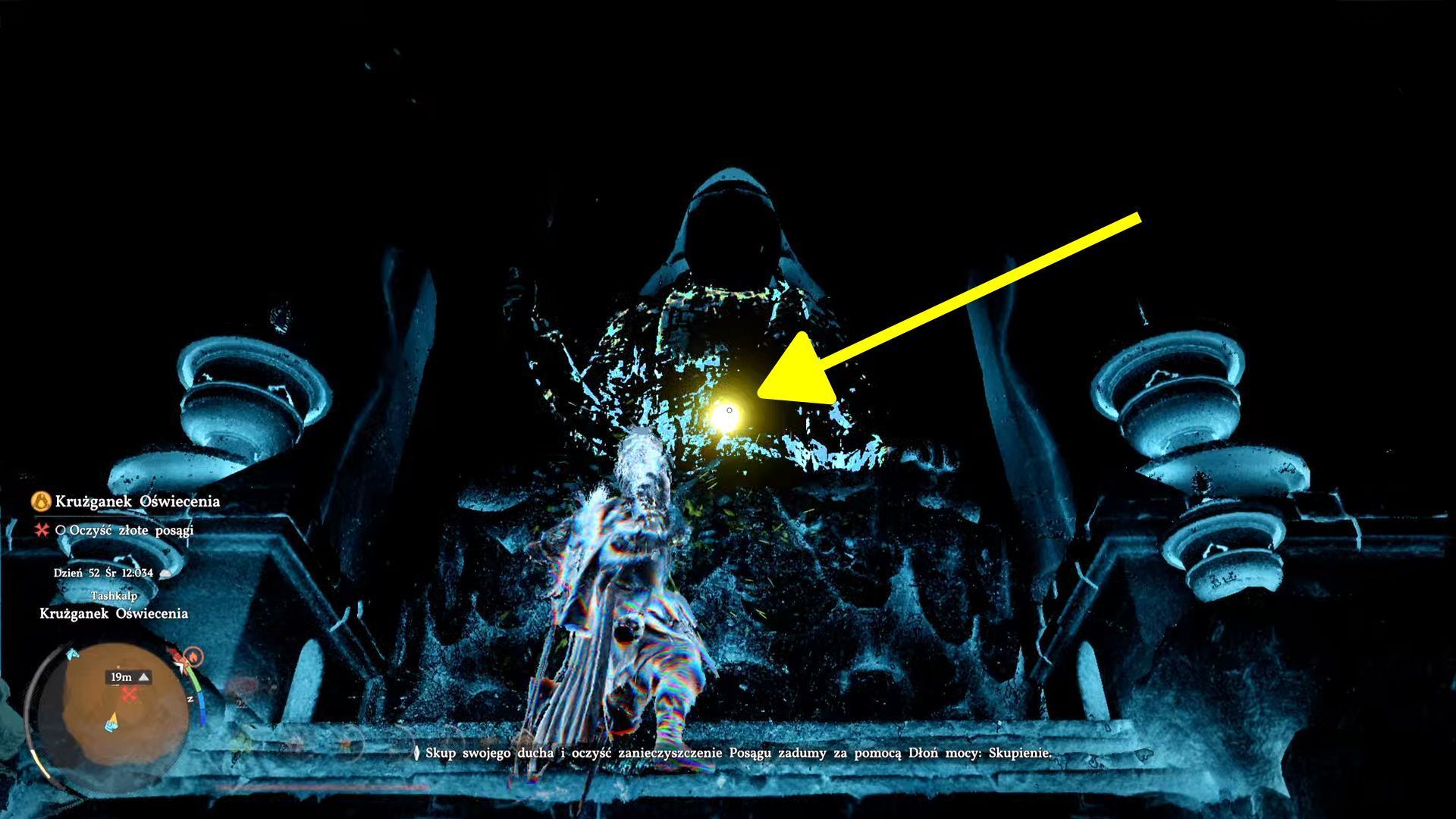 - Ustawcie się przed dużym centralnym posągiem i zacznijcie od aktywowania skupienia (wciśnięcie L3+R3).