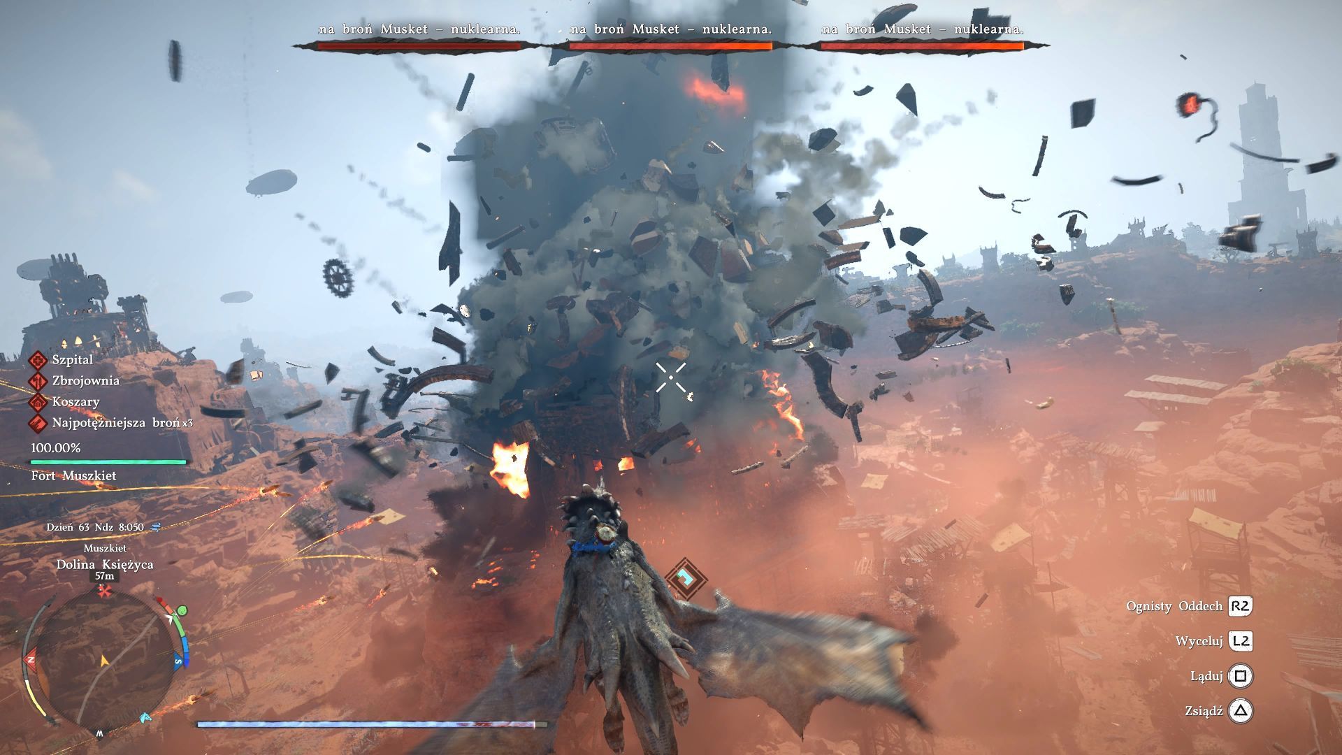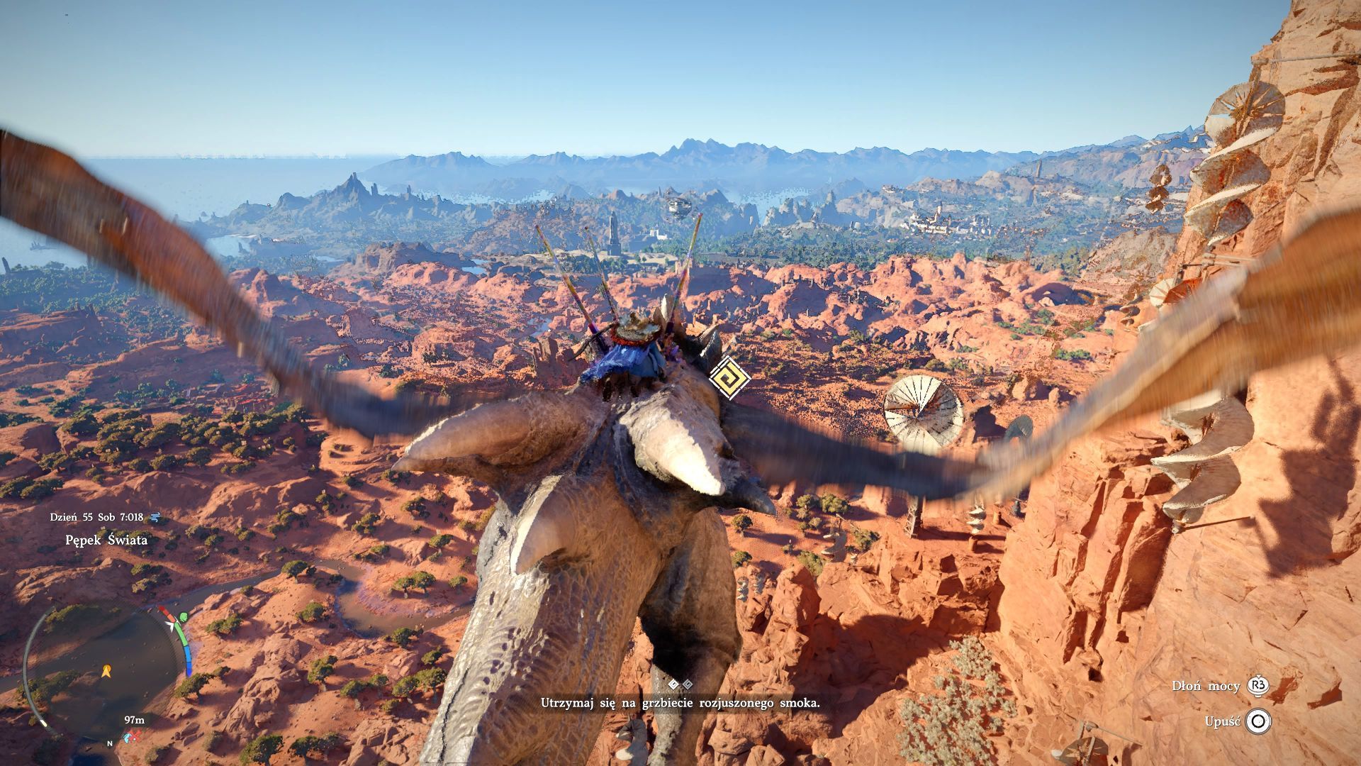 - Nowy mount przyda się Wam nie tylko do eksploracji, ale też m.in. do atakowania i osłabiania wrogich lokacji, jak choćby fortów czy obozów. Miejcie jednak świadomość tego, że wrogowie nie zawsze będą bezbronni i mogą bronić się przed atakami z powietrza. Smok ma własny pasek zdrowia i po jego wyczerpaniu możecie z niego spaść. Jeśli bestia potrzebna była do zaliczenia jakiejś misji, to może to oznaczać jej zawalenie i konieczność ostrożniejszej gry przy kolejnej próbie.