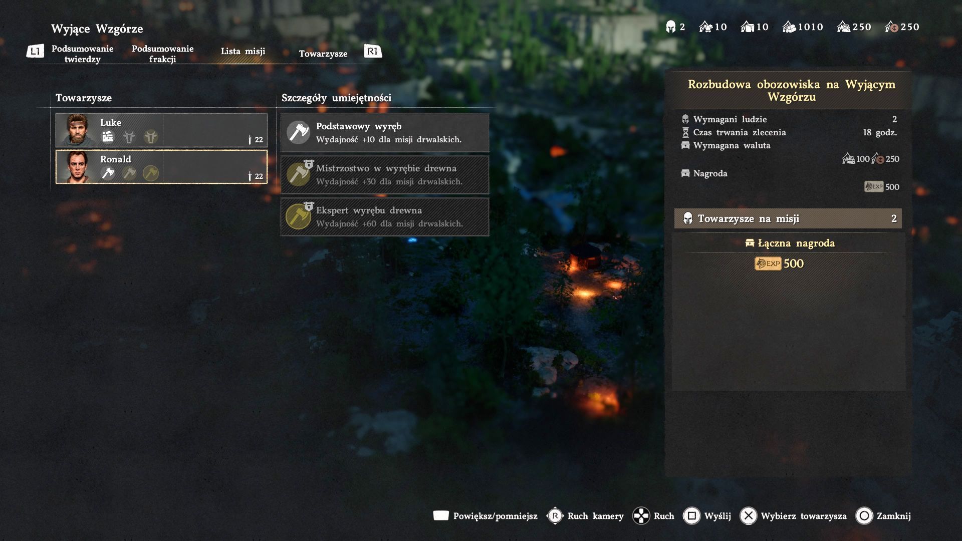 - Po tym jak odblokujecie obóz Wyjące Wzgórze w rozdziale 3 możecie zacząć wysyłać towarzyszy na misje i powinniście zauważyć, że początkowo jest dostępnych tylko 2 Szarogrzywych, którzy mogą brać udział w misjach.
