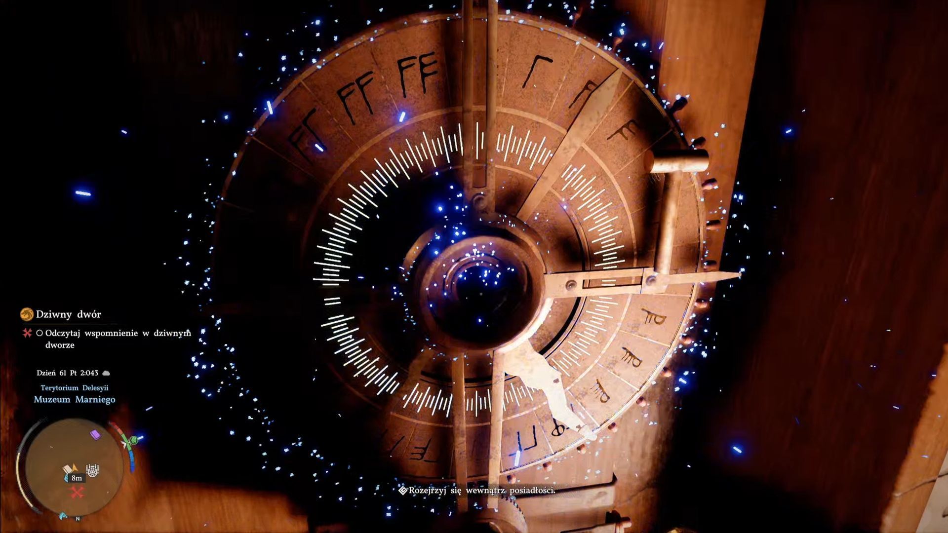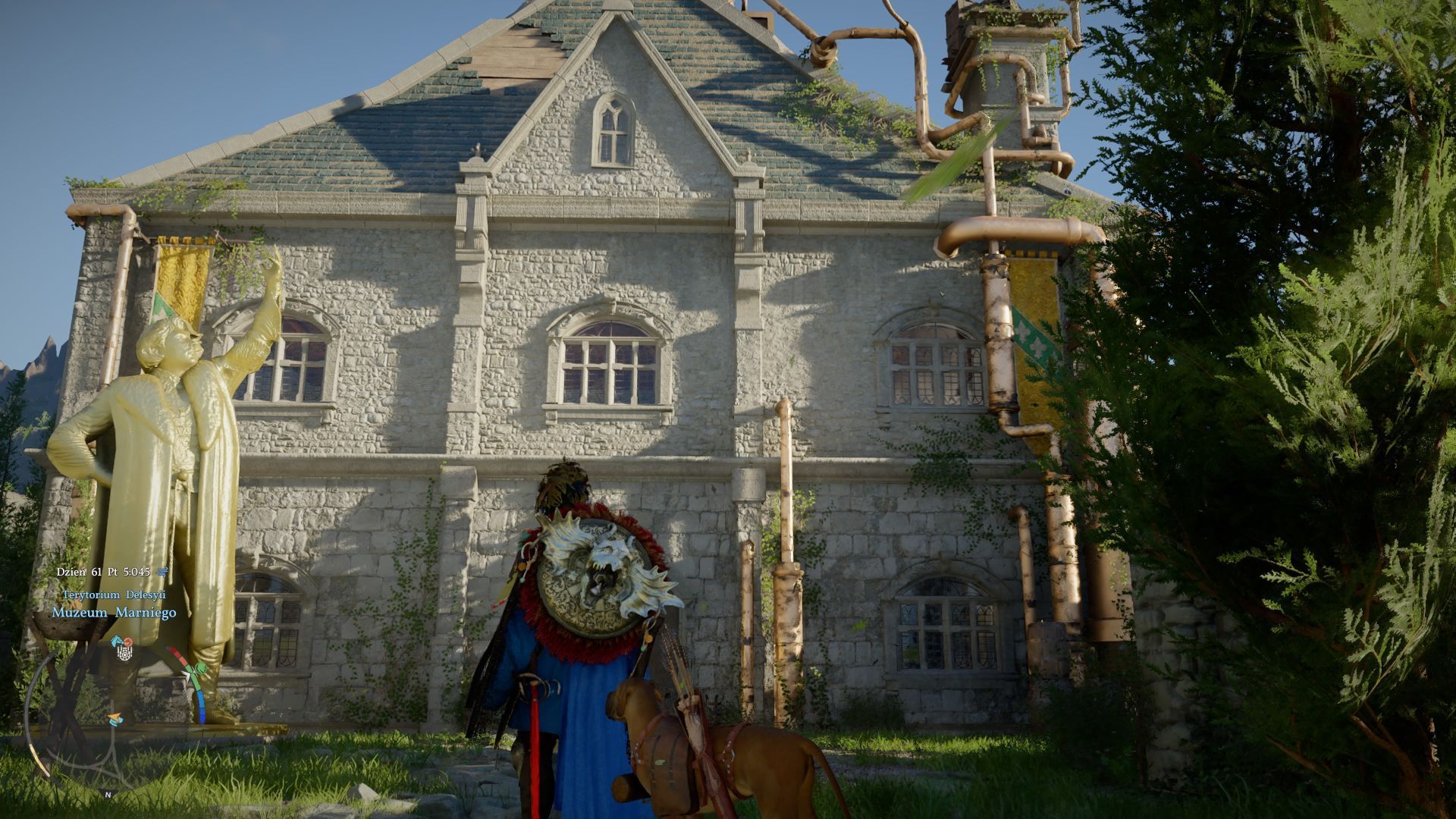 - Kliff wyląduje obok dworu ze złotym posągiem - to Muzeum Marniego i musicie zająć się jego dokładnym zbadaniem. Warto mieć cały czas założony wizjon, bo będzie on wymagany do rozwiązania zagadek i odblokowania nowych przejść na dworze.
