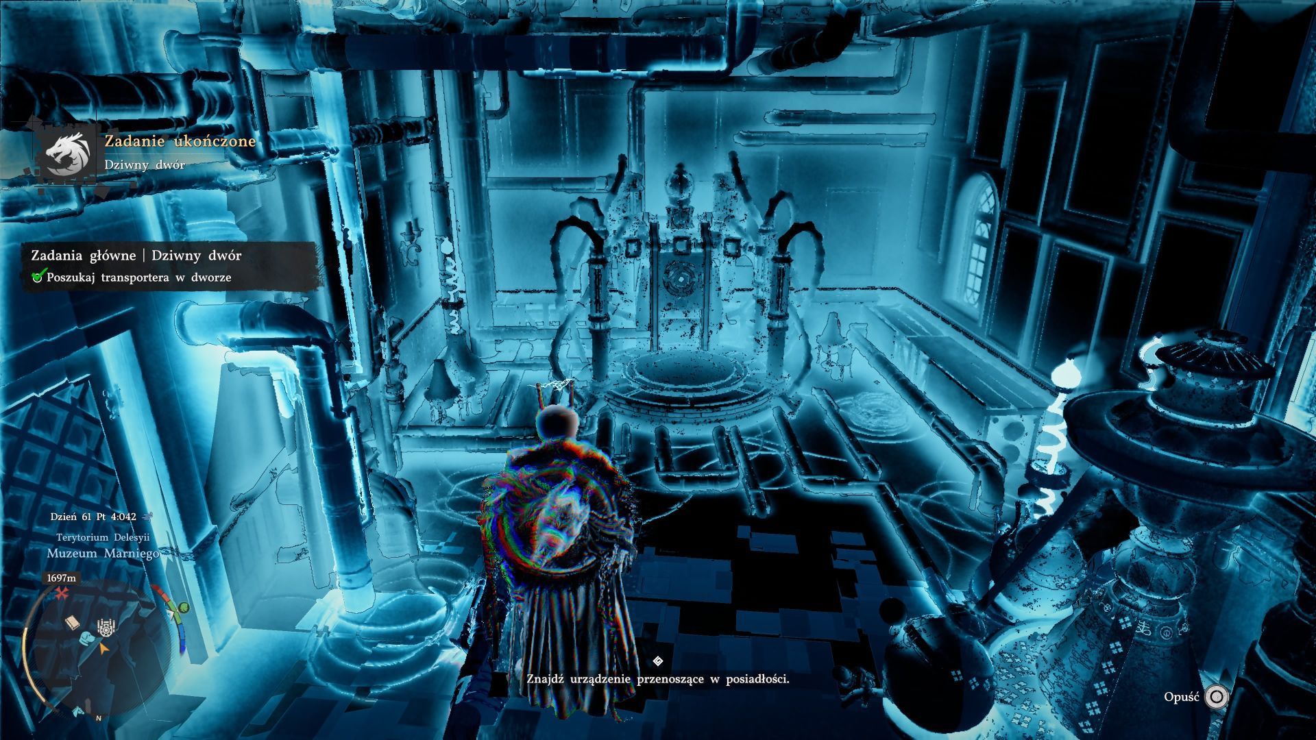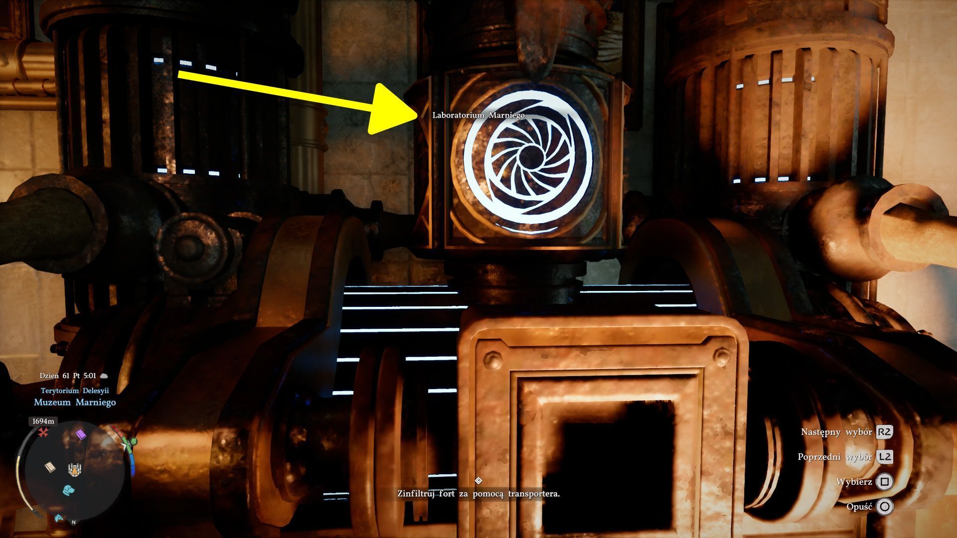 - Druga część pobytu w Dziwnym Dworze to znalezienie transportera, który posłuży do teleportowania bohatera do kilku sekretnych lokacji. Musicie w tym celu dotrzeć do pomieszczenia na piętrze Muzeum Marniego.