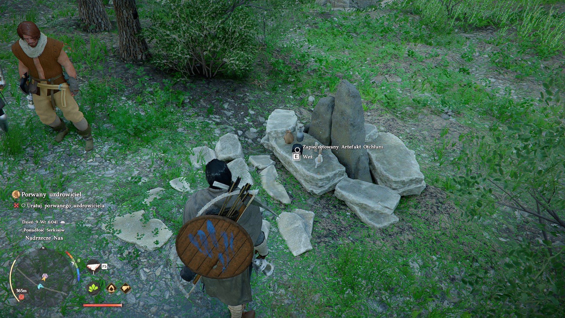 - Ustawiajcie się przy dobrych punktach widokowych i sprawdzajcie okolicę. Warto docierać do błyszczących lokacji (przykład na obrazku). Nie ma gwarancji, że będzie to zawsze ołtarzyk z artefaktem, bo alternatywnie możecie znaleźć np. ruiny do zbadania czy punkt szybkiej podróży.