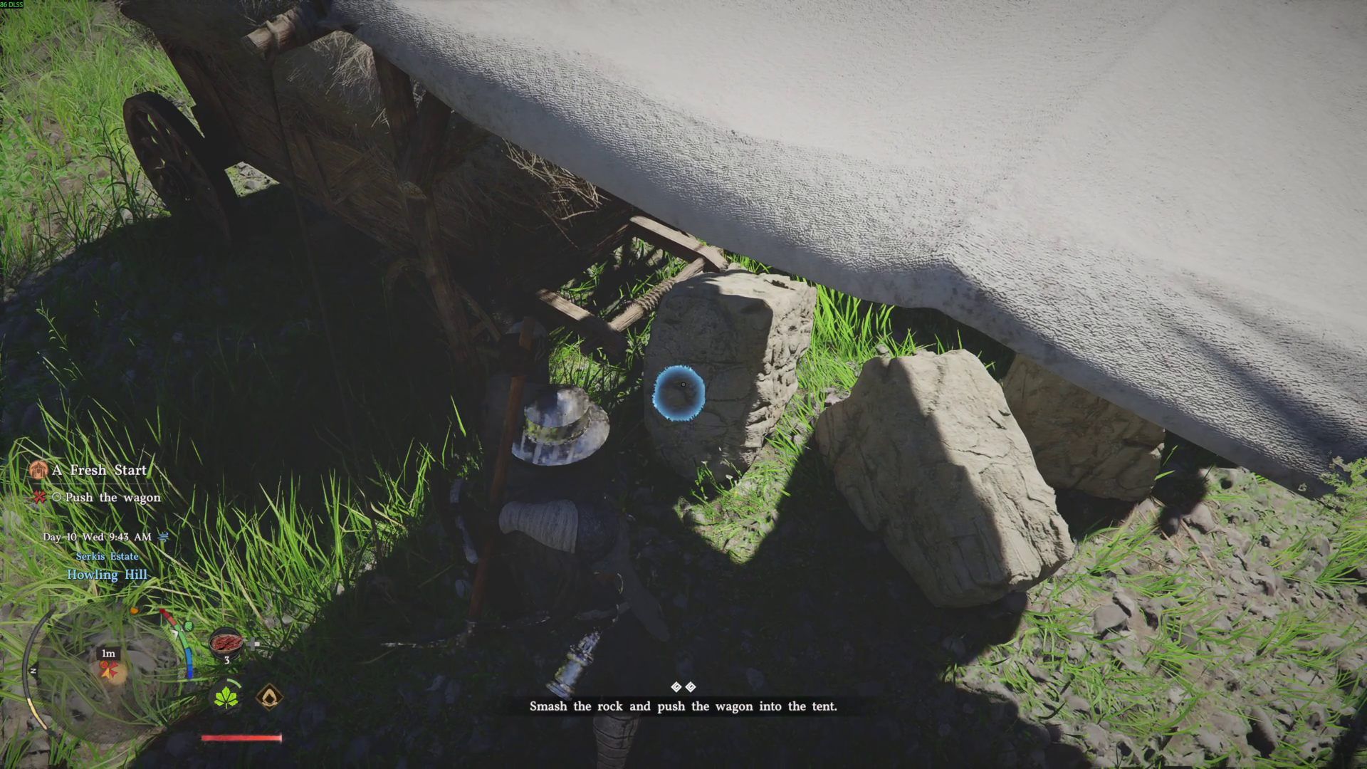 - Gdy droga zostanie oczyszczona wystarczy już tylko przepchać wóz pod namiot. Wystarczy że w niego wejdziecie, a Kliff sam zacznie go przepychać.