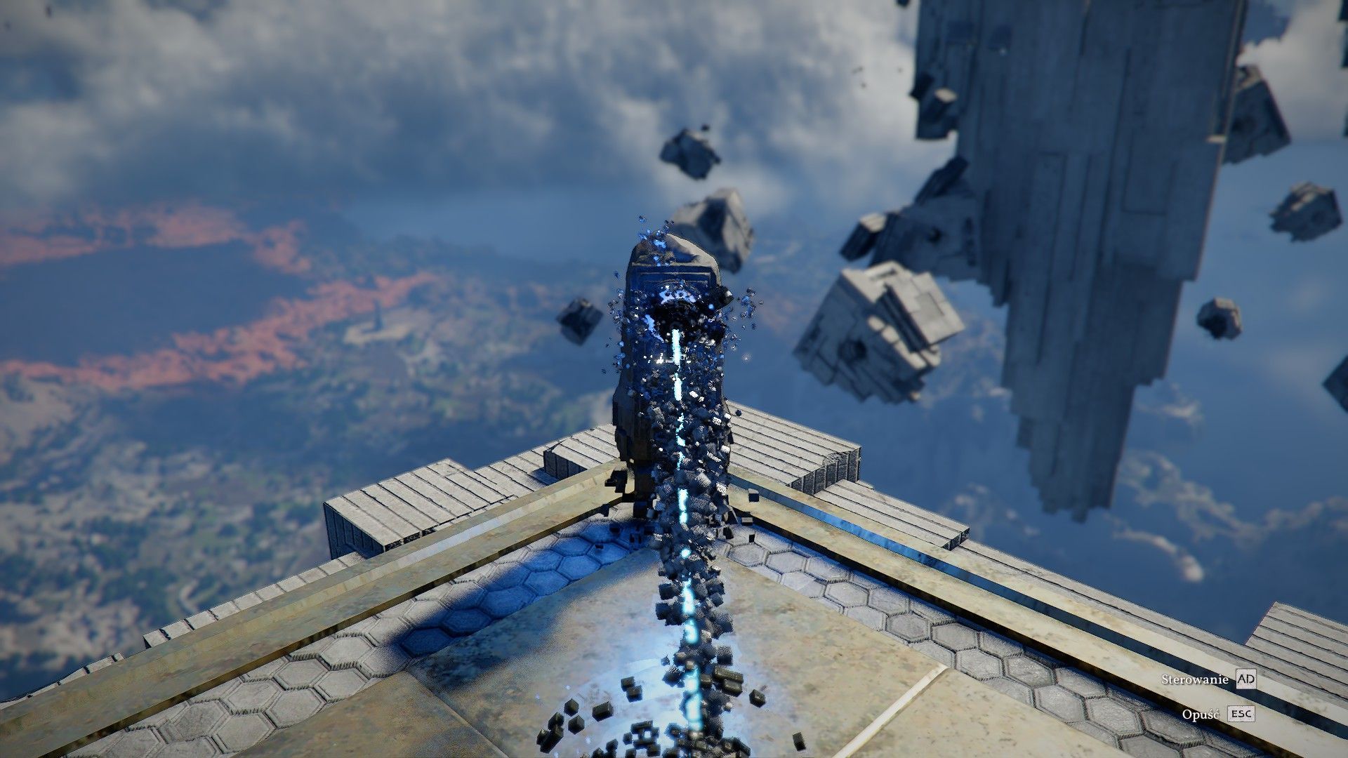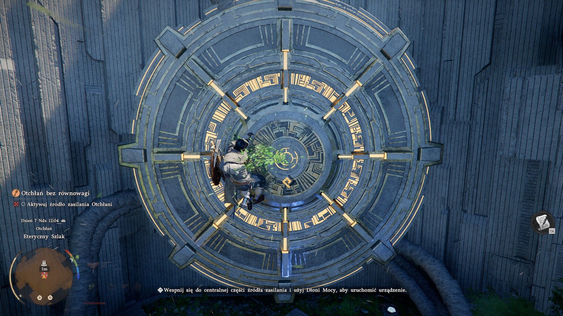 - Ponownie wciśnijcie przycisk użycia Dłoni mocy (środkowy przycisk myszy / R3) żeby uderzyć w sam środek urządzenia. Po poprawnej akcji zostaniecie odrzuceni i ponownie wylądujecie na dolnym poziomie. Zaliczcie kolejną wspinaczkę żeby powrócić na górę.