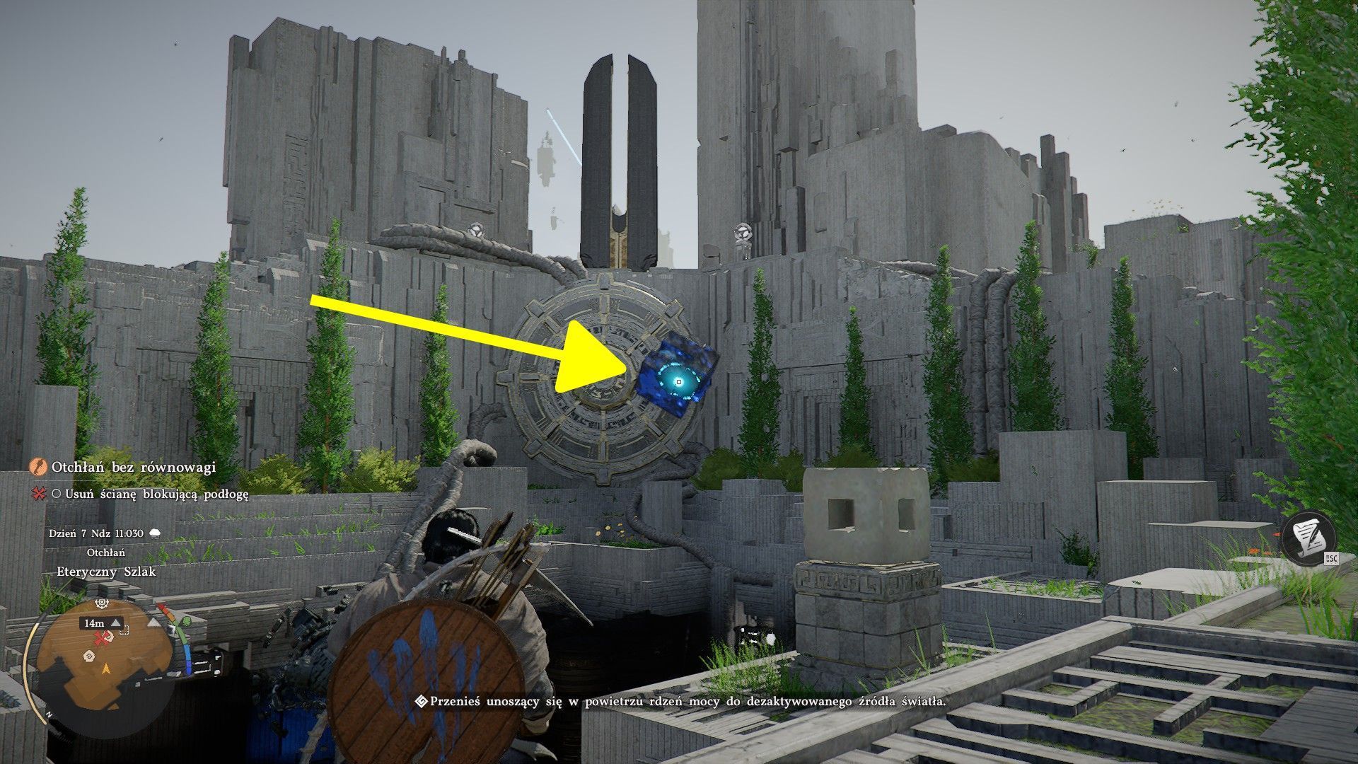 - Na początek użyjcie Mocy Aksjomatu na lewitującym rdzeniu mocy (TAB / L3) - pokazujemy to na powyższym obrazku. Trzeba go złapać.