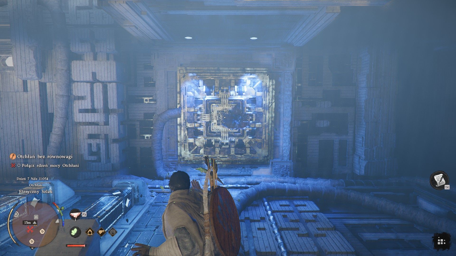 - Za bramą jest mechanizm dostrajający i to z nim jest powiązana kolejna zagadka. Zacznijcie od wycelowania Mocy Aksjomatu w mechanizm (powyższy obrazek) żeby się z nim połączyć.