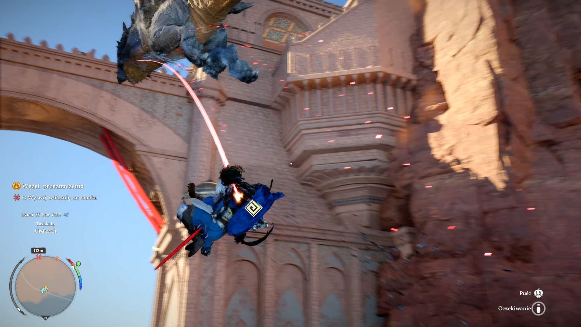 Jest duże ryzyko, że próba wskoczenia na smoka nie uda się i może np. dojść do sytuacji, w której zderzycie się z Wielką Bramą podczas przelatywania pod nią. W takiej sytuacji od razu przytrzymajcie przycisk Oczekiwanie i przy kolejnej próbie spróbujcie wcześniej lub później dolecieć do smoka.