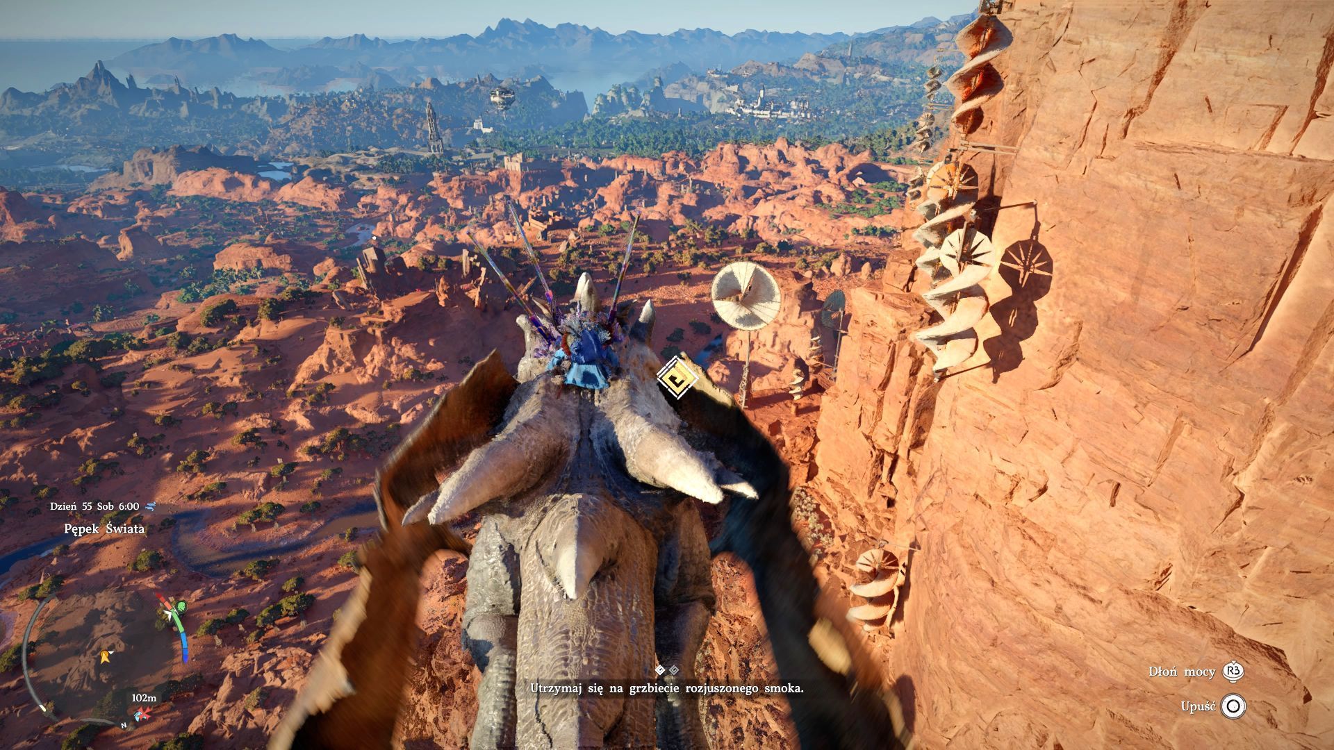 - To nie wszystko, bo trzeba wykonać dodatkowy manewr w powietrzu i tuż po złapaniu się smoka wcisnąć przycisk interakcji (Kwadrat na PlayStation, X na Xboksie). Udaną akcję powinna zasygnalizować zmiana koloru połączenia na czerwony i po chwili Kliff powinien pomyślnie wylądować na grzbiecie smoka.