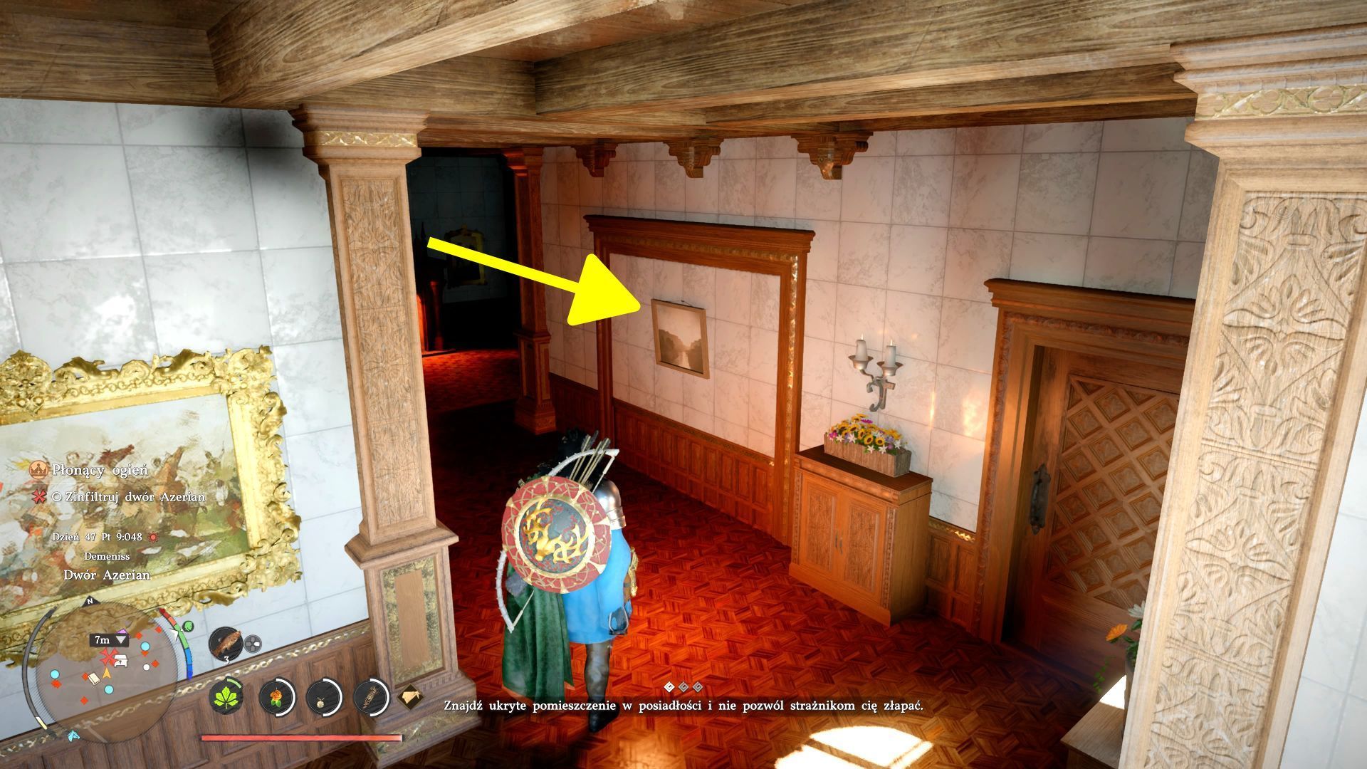 - Znajdźcie na piętrze ścianę z ramką i wiszącym obrazem - jest ona w jednym z korytarzy i pokazuje ją powyższy obrazek.