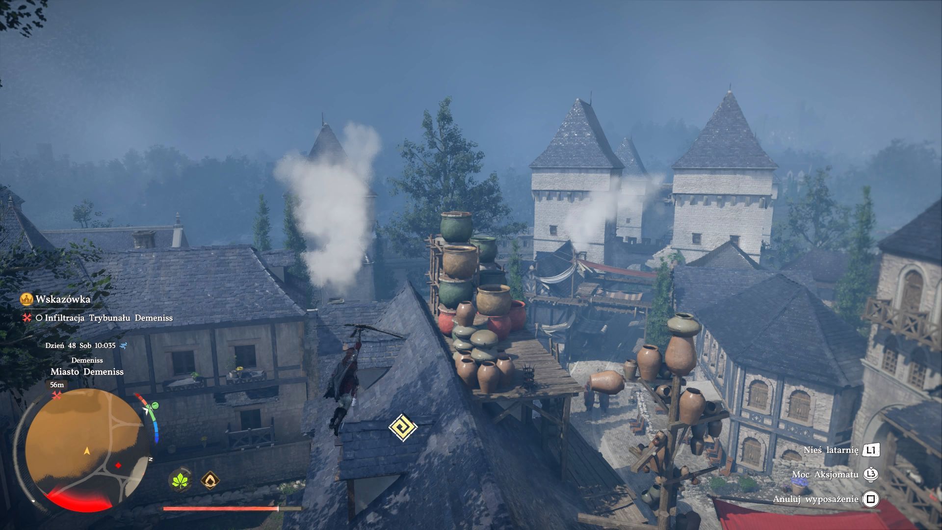 - Prawo wstępu do miasta otrzymacie począwszy od rozdziału 9. Pozwoli to Wam na swobodne eksplorowanie głównej części miasta z wąskimi uliczkami i sklepami, ale zamek Demeniss i górne dzielnice nadal pozostaną niedostępne.