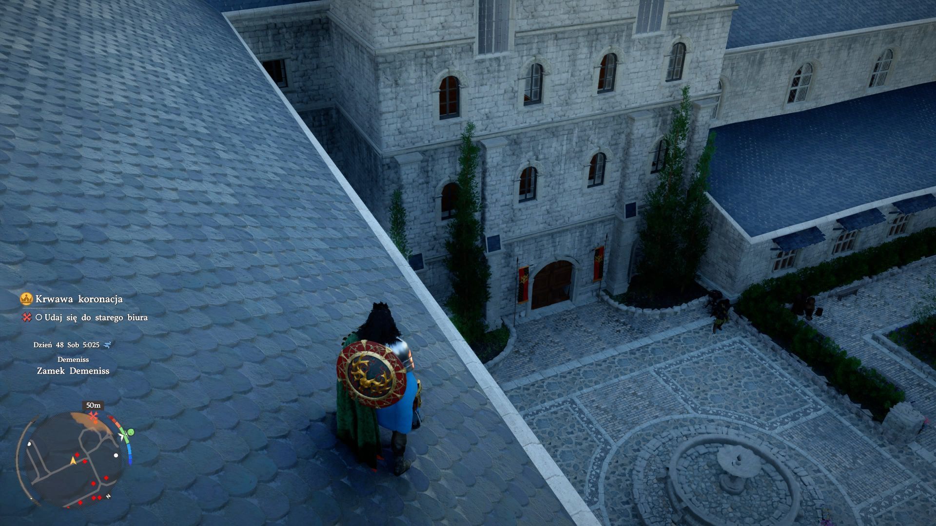 - Rozwiązaniem problemu braku wstępu do zamku jest wspinanie się na zamkowe mury i używanie mechaniki szybowania. Będzie to Wam potrzebne m.in. do dotarcia do miejsca odczytania wspomnienia krwawej koronacji w rozdziale 8. Możecie też szukać okiennic na wyższych piętrach i je otwierać, omijając strażników pilnujących dolnych wejść.