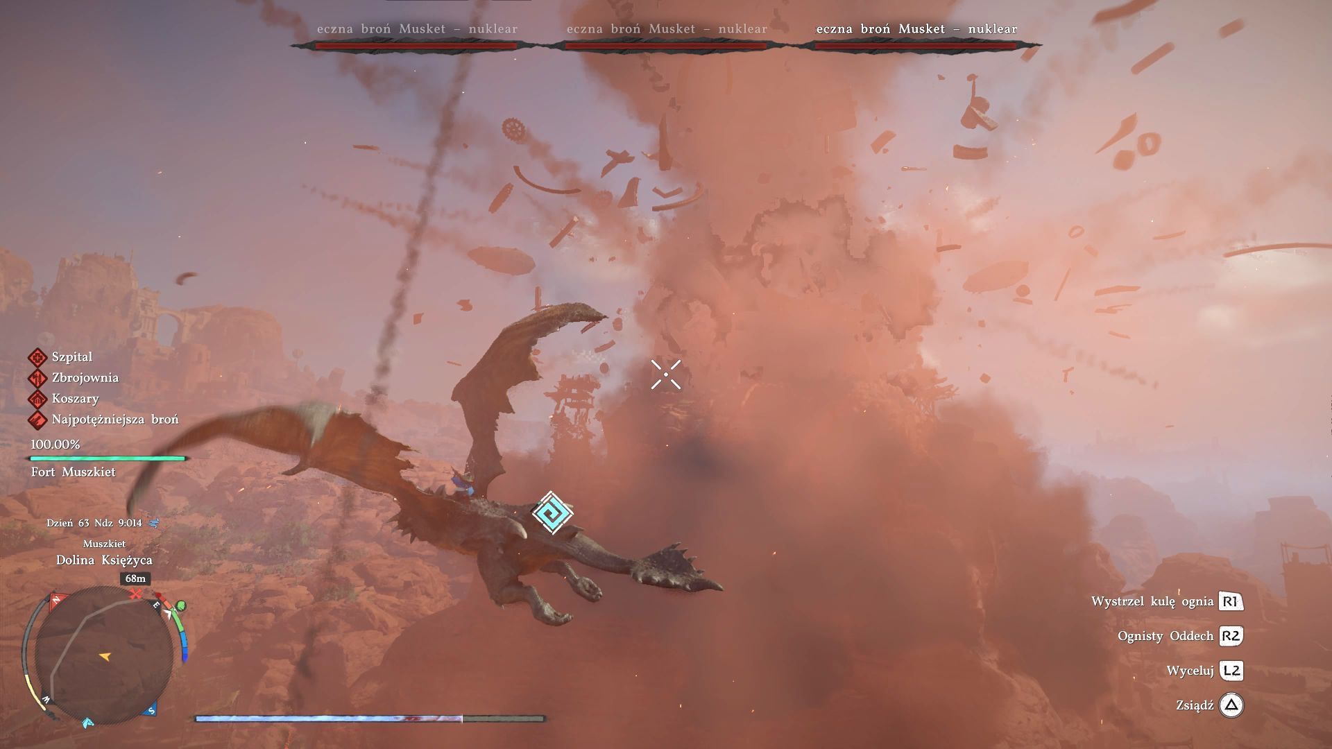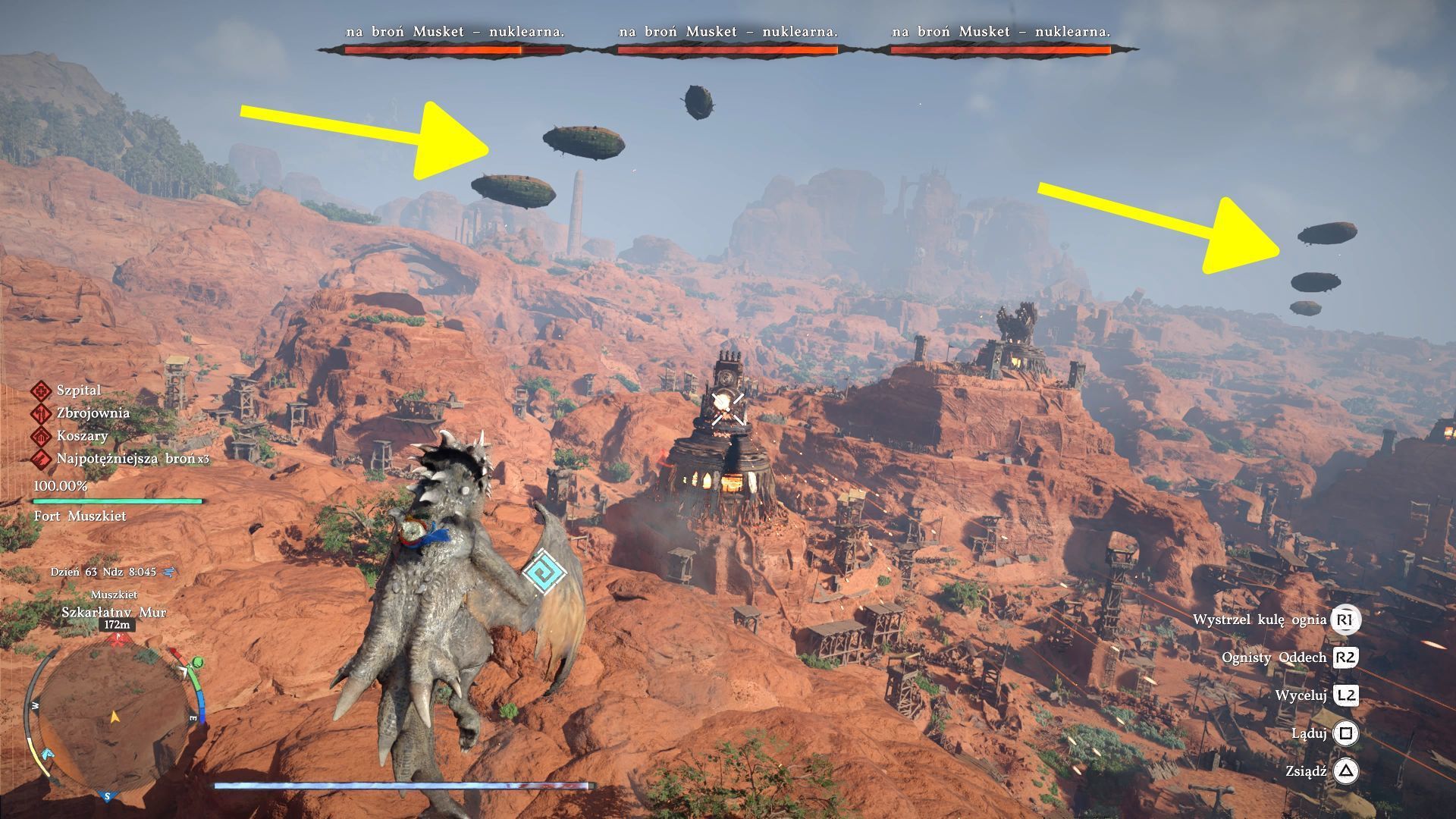 - Istotne jest to, że smok ma tylko jeden pasek zdrowia i musi on Wam "wystarczyć" na całą bitwę. To właśnie dlatego pozbycie się sterowców jest kluczową sprawą, bo pozwoli to Wam skupić się "jedynie" na unikaniu ostrzału ze strony głównych celów misji.