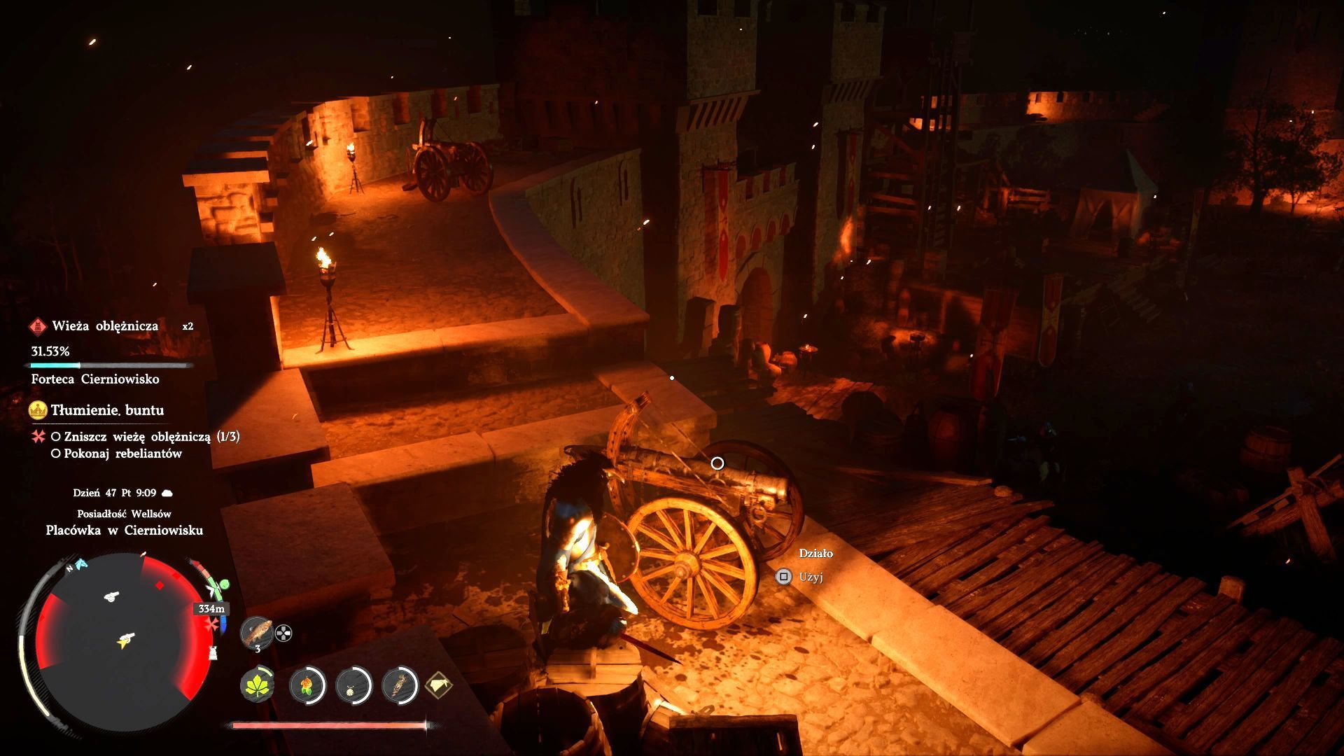 - Są trzy główne sposoby na niszczenie wież. Pierwsza i najlepsza metoda to szukanie dział w okolicy - mogą one znajdować się na polu bitwy lub na zamkowych murach. Po przejęciu kontroli nad działem wycelujcie w wieżę i oddajcie 2-3 strzały. Powinno to być wystarczające do zburzenia wielkiej drewnianej konstrukcji.
