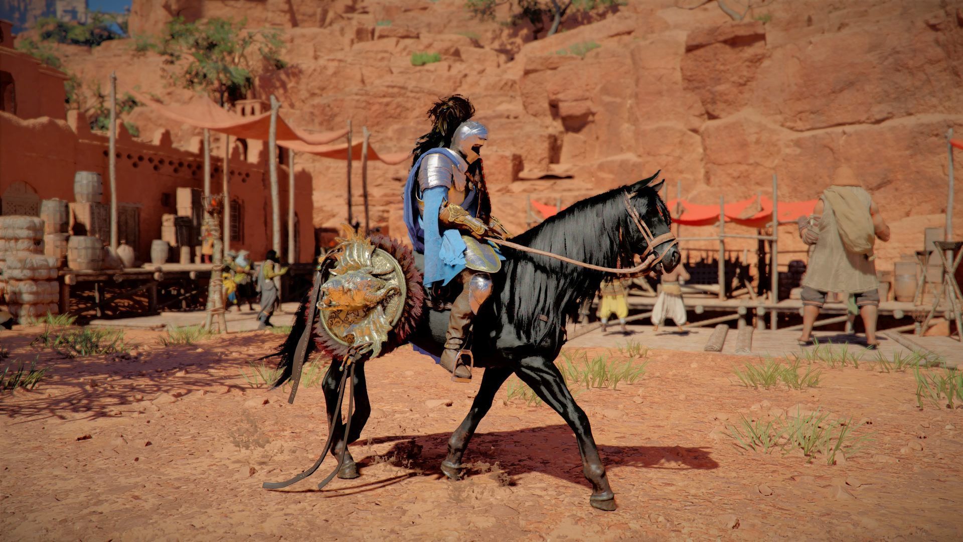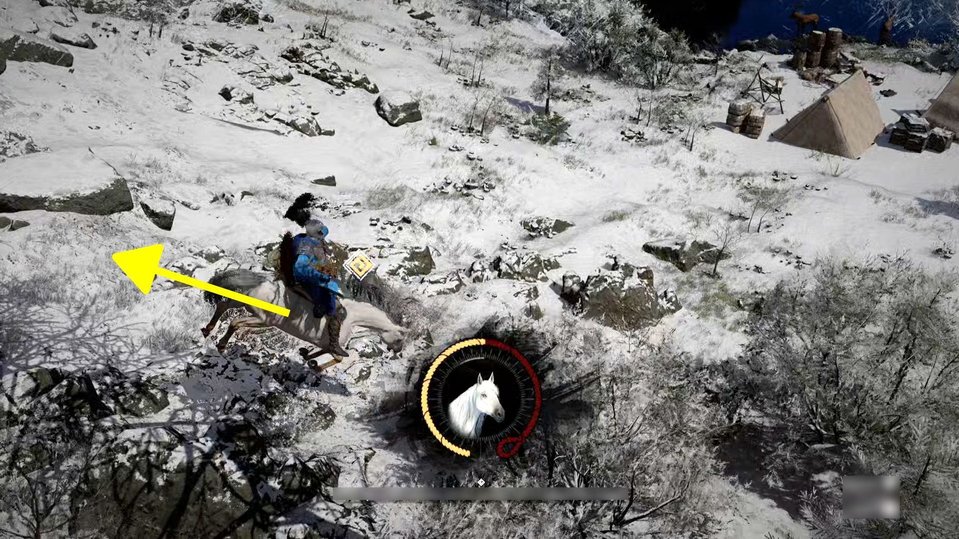 - Po dotarciu na miejsce rozejrzyjcie się za białym wierzchowcem. Musicie na niego wskoczyć i rozpocząć proces jego ujarzmiania.