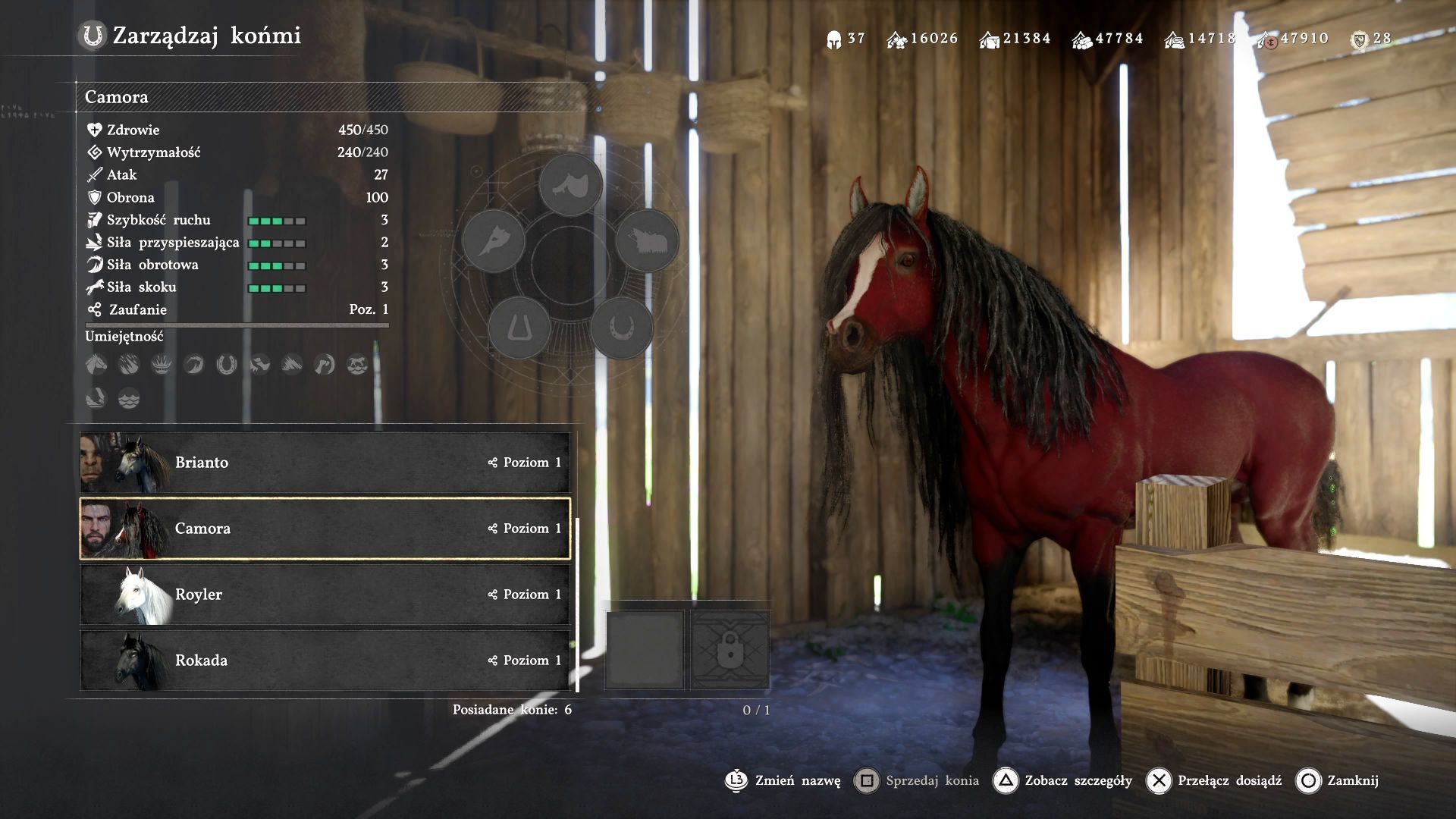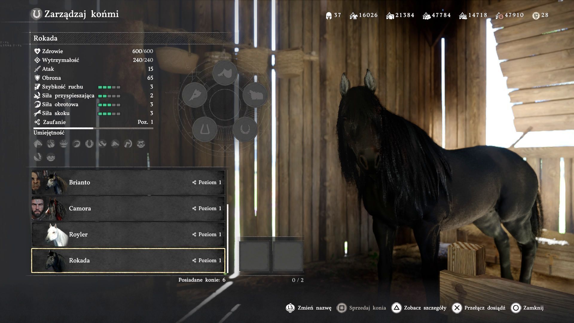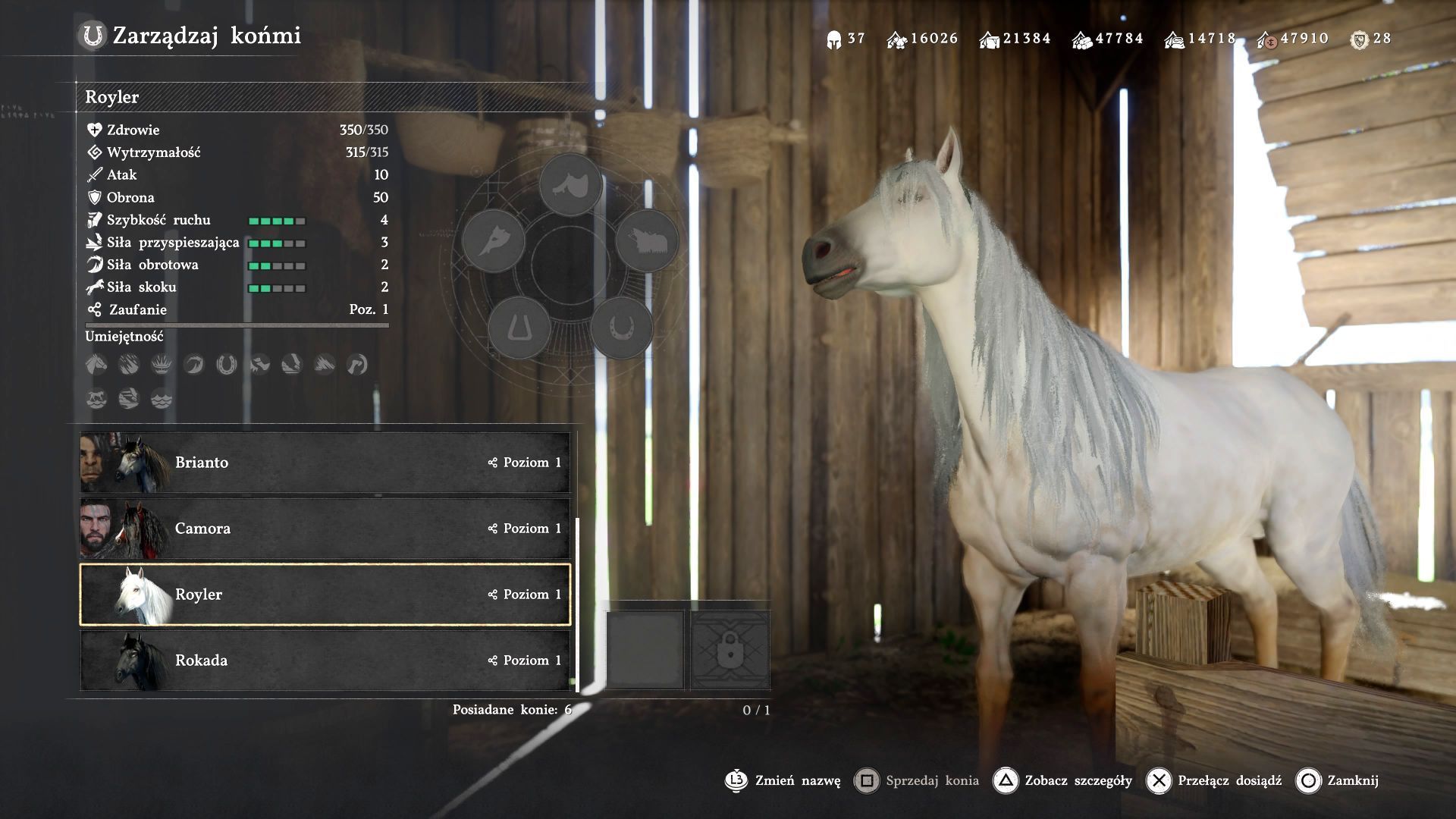 - Najlepsza statystyka Roylera to szybkość ruchu. Jest to więc rekomendowany wierzchowiec do szybszego eksplorowania świata.