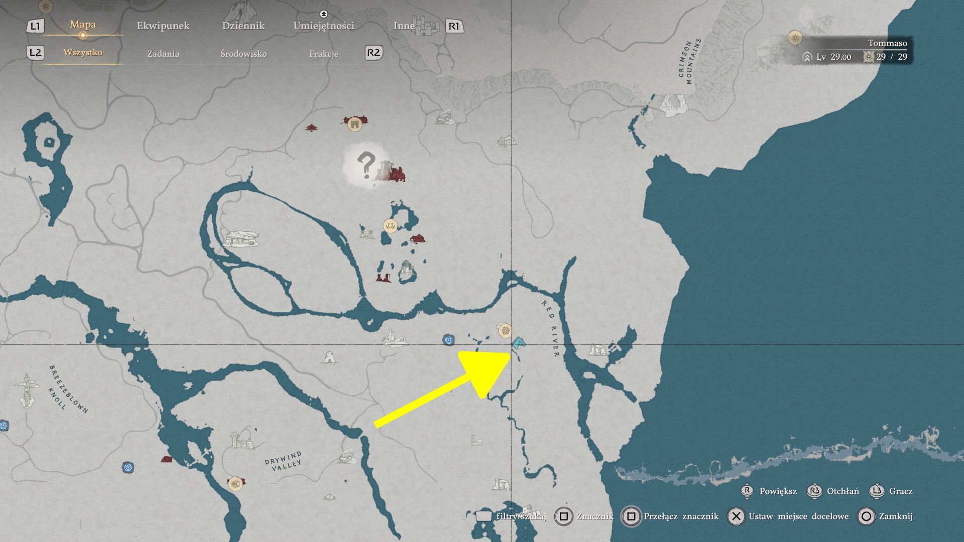 - Zlokalizowaniem tego wierzchowca możecie zająć się w regionie Karmazynowa Pustynia we wschodniej części mapy świata. Rozejrzyjcie się w pobliżu lokacji Las czerwodrzew, na zachód od podpisu Red River na mapie.