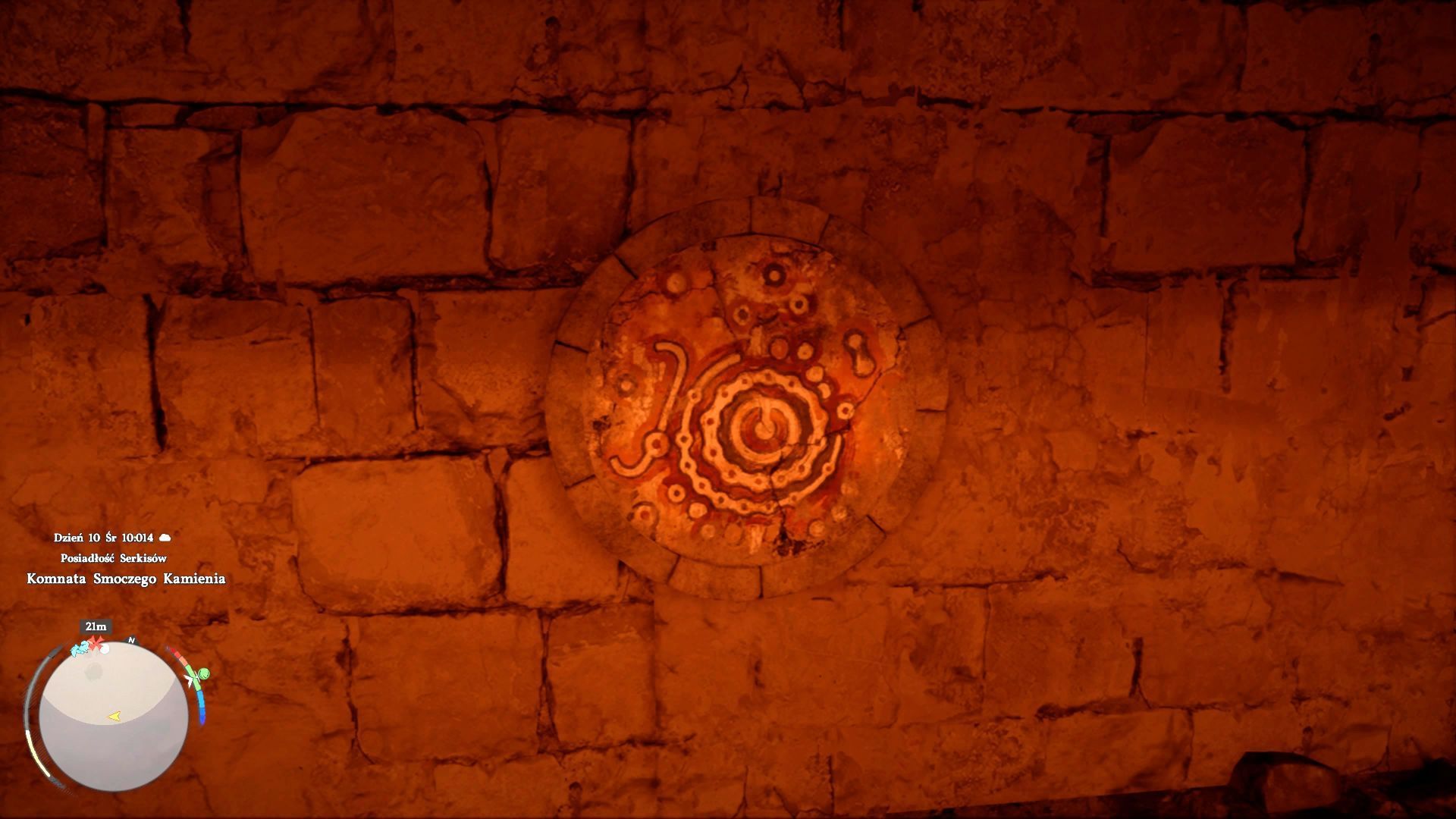 - W ruinach jest dół z trzema wzorami - to interaktywne mechanizmy, którymi możecie obracać. Założeniem zagadki jest poprawne ustawienie trzech wzorów.