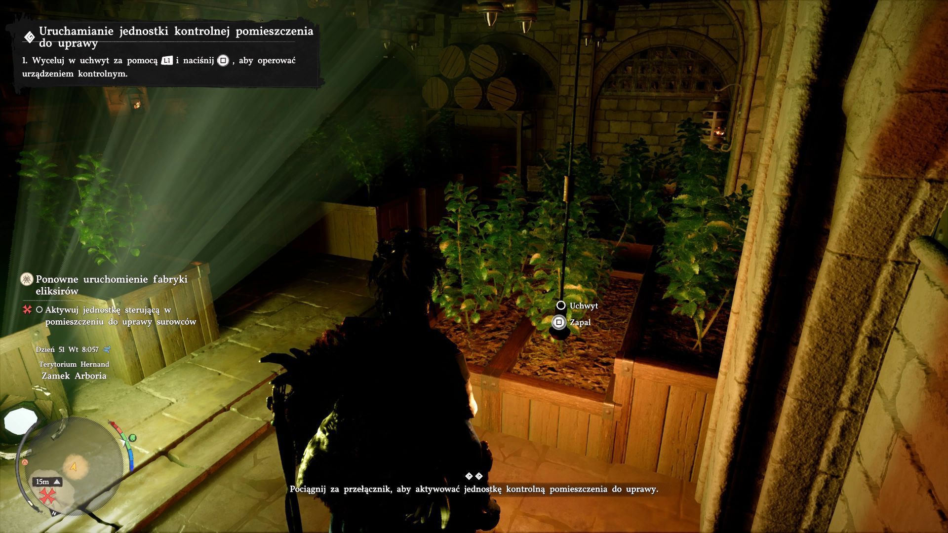 - W następnym kroku należy aktywować rozlewnię eliksirów. Dotrzyjcie do trudniej dostępnego uchwytu z obrazka, za który musicie pociągnąć.