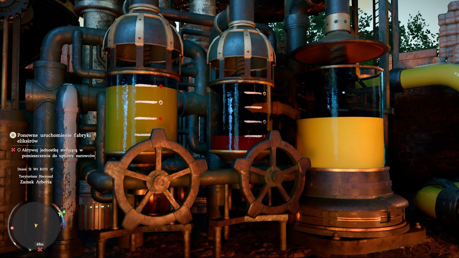 - Ponowne uruchomienie fabryki eliksirów to tytuł pobocznego zadania i zarazem rozbudowanej zagadki z regionu Hernand. Rozwiązuje się ją w opuszczonej fabryce wewnątrz Zamku Arboria - jest on na Wzgórzach Bez Powrotu (Hills of No Return) w północno-wschodniej części regionu.