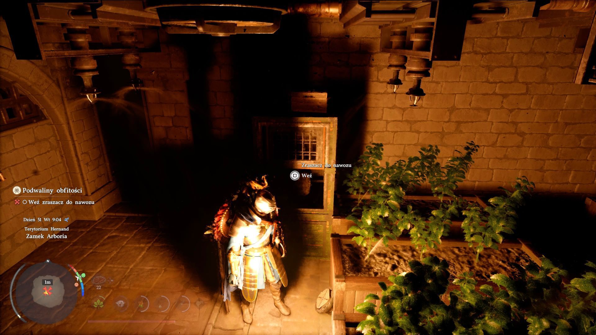- Możecie teraz w ramach kolejnego pobocznego zadania Podwaliny obfitości udać się z powrotem do piwnicy (zejdźcie po drabinie). Znajdziecie tam zraszacz do nawozu - to przedmioty zużywalne, których możecie używać na farmie w Waszym obozie. Pozwoli to wyhodować lepsze plony.