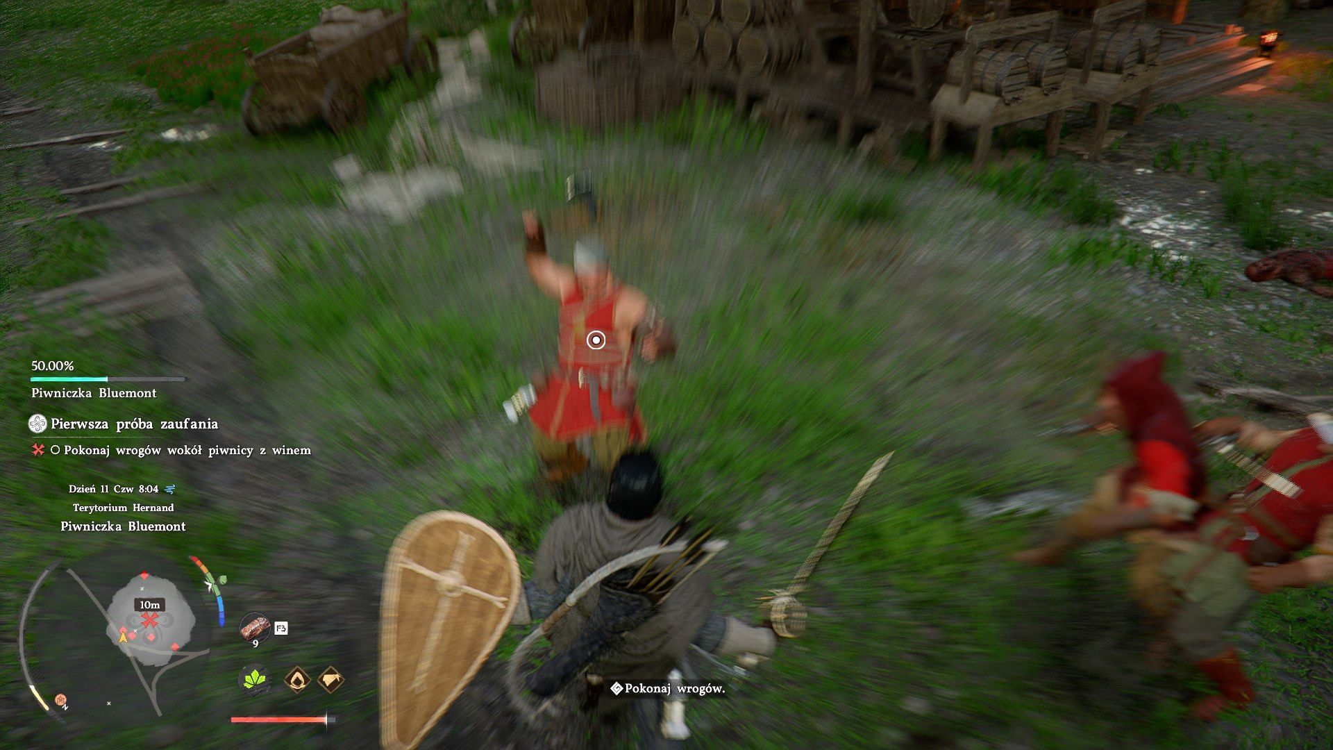 Jeszcze innym zastosowaniem minimapy może być ostrzeganie o przeciwnikach z okolicy, którzy oznaczani są czerwonymi kropkami. To duża pomoc szczególnie podczas swobodnego podróżowania po świecie, bo np. z wyprzedzeniem dowiecie się o bandytach planujących zasadzkę.
