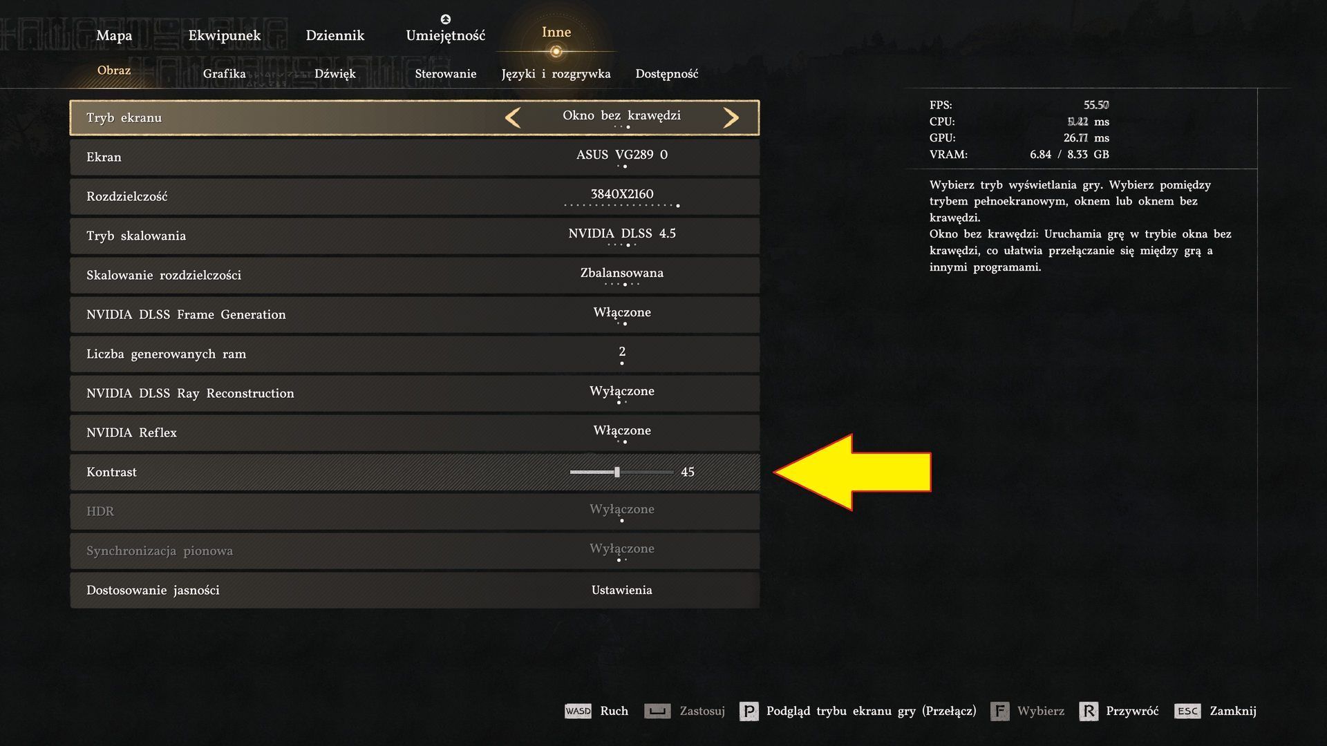 - Zmniejszcie domyślny kontrast gry