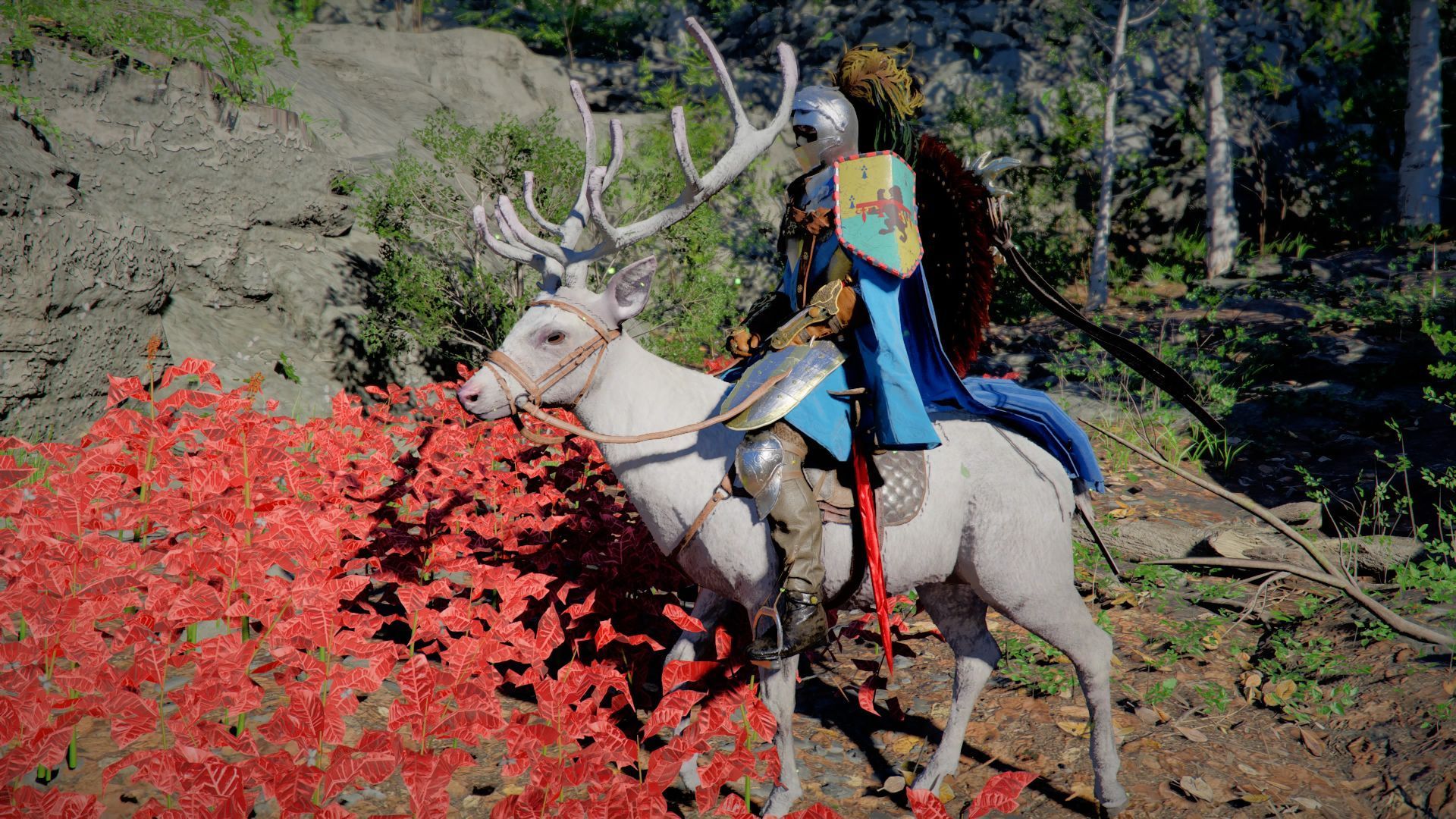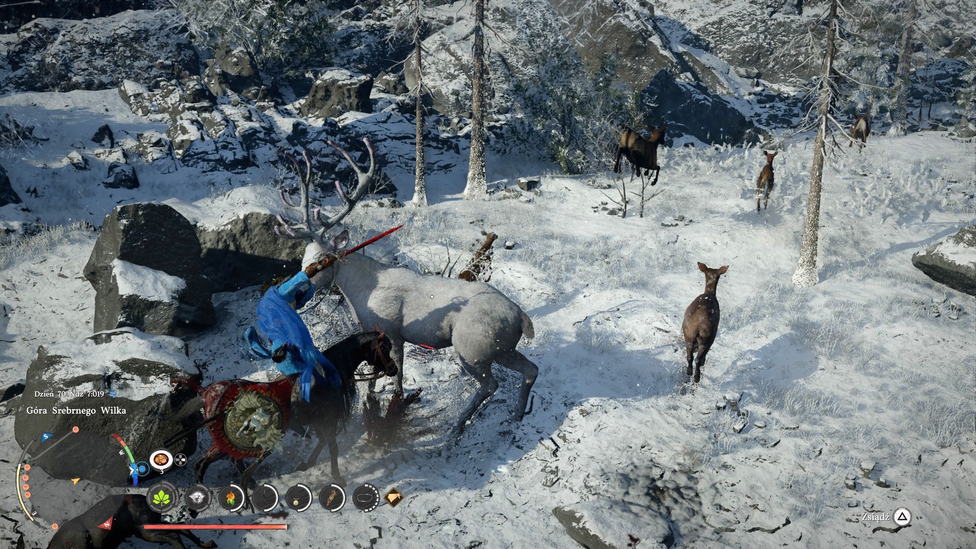 - Trzeba znaleźć większego białego jelenia w towarzystwie innych dzikich zwierząt. Polecamy podróżować konno, bo jeleń rzuci się do ucieczki. Gońcie go na koniu i używajcie zwykłych ataków mieczem. Możecie też skorzystać z innych technik, np. ze strzelania do jelenia z łuku lub innej broni dystansowej.