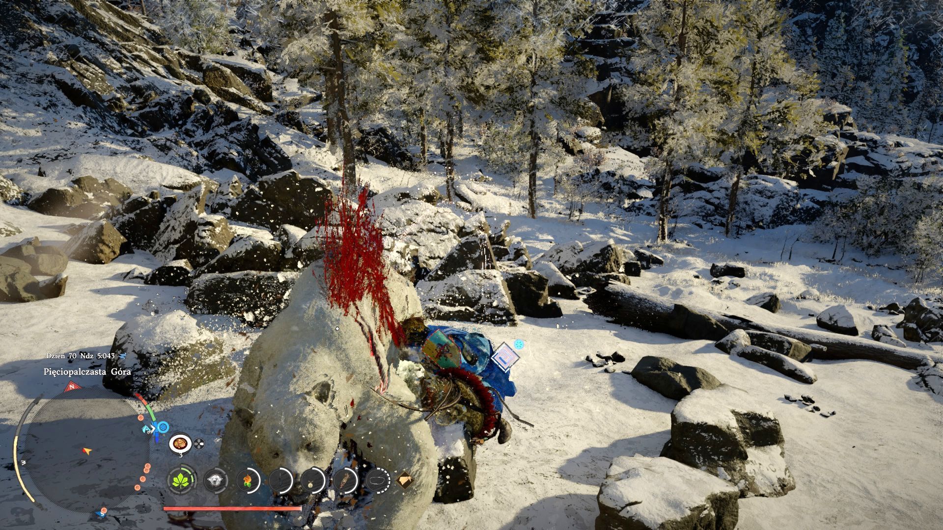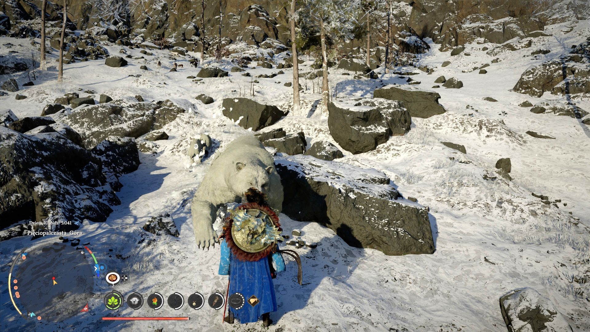 - Musicie znaleźć dużego białego niedźwiedzia w towarzystwie kilku mniejszych. Zignorujcie młode i skupcie się na atakowaniu głównego drapieżnika. Niedźwiedź jest wytrzymały, ale możecie na nim stosować specjalne ataki. Unikajcie jedynie jego czerwonych ataków pazurami.