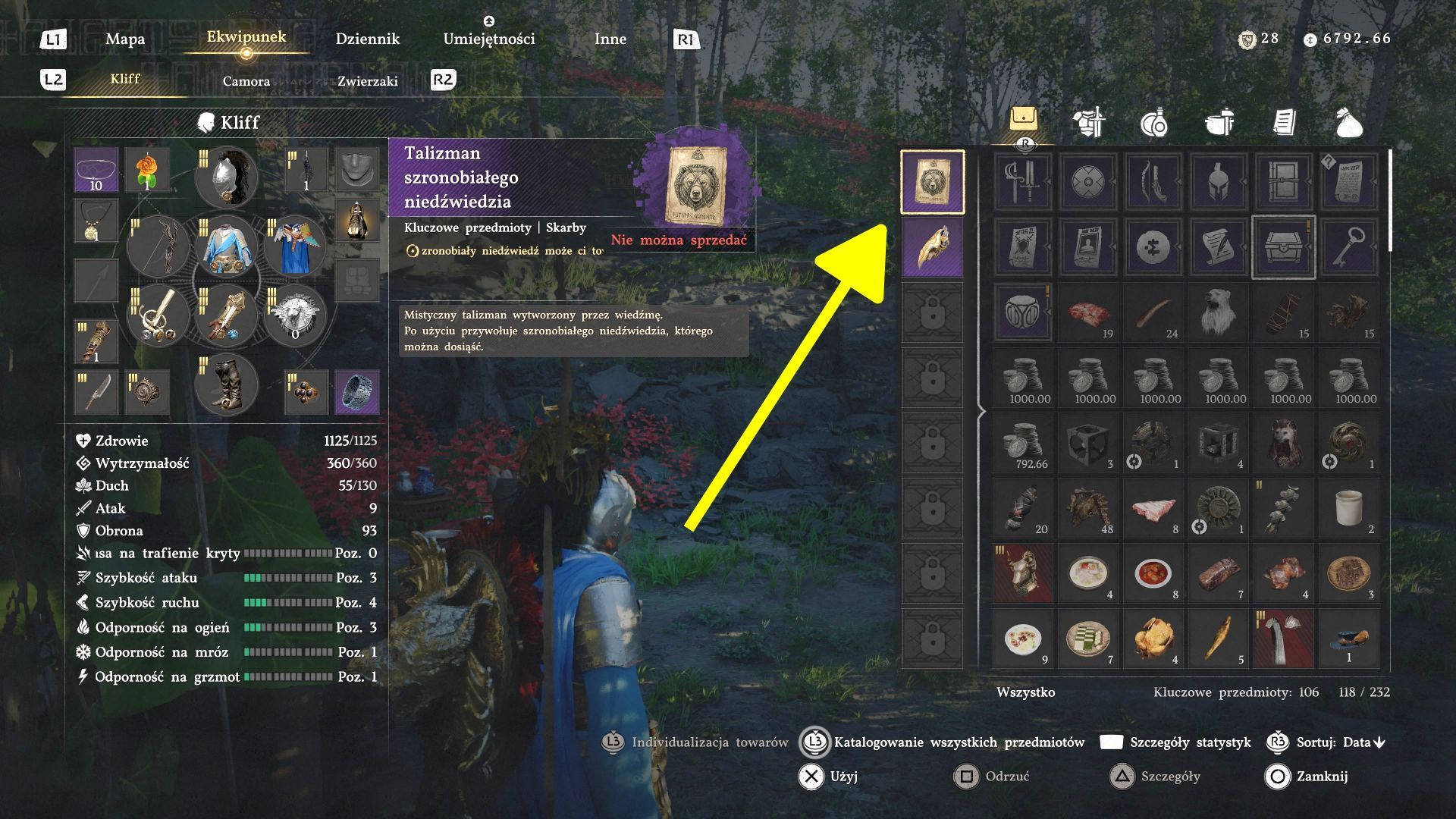 - Talizmanu nie zakłada się jak typowego elementu wyposażenia. Zamiast tego wybierzcie w inwentarzu kategorię kluczowych przedmiotów i następnie opcję Użyj. Spowoduje to, że nauczycie się przyzywania nowego typu wierzchowca.