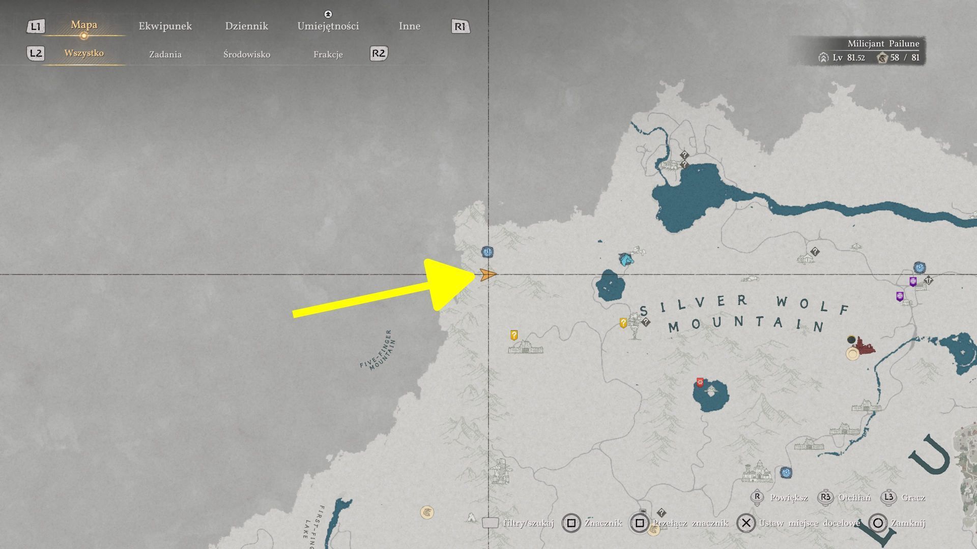- Na poszukiwania niedźwiedzia wyruszcie do Gór Srebrnego Wilka (podpis Silver Wolf Mountain na mapie świata) w północno-zachodniej części Pailune. W pobliżu legowiska niedźwiedzia znajduje się też punkt szybkiej podróży.