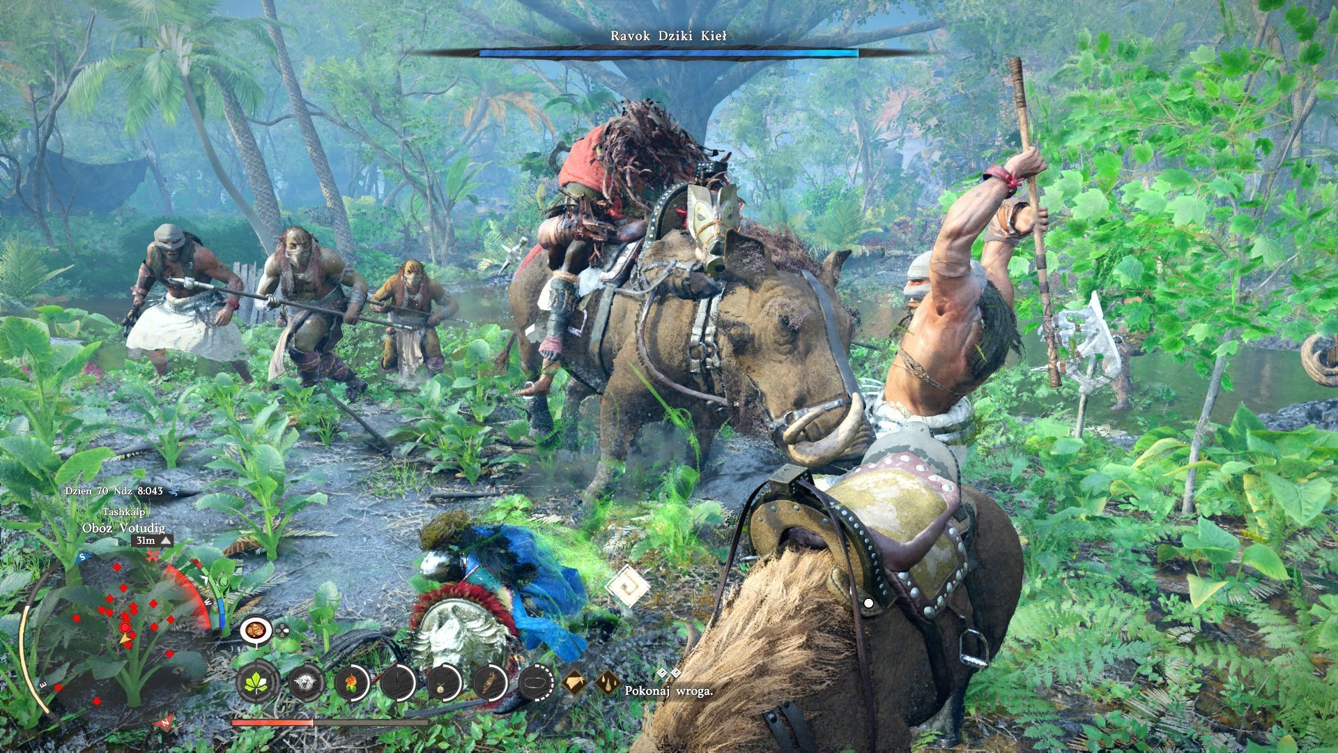 - W całej tej okolicy przebywa mnóstwo przeciwników - będą to wysocy i silni wojownicy, jak również wrogowie dosiadających innych guźców. Wskazane jest pozbycie się co najmniej części z nich, bo główny przeciwnik Ravok Dziki Kieł to boss z dwoma paskami zdrowia. Jeśli wcześniej nie pozbędziecie się obstawy, to o wiele trudniej będzie osłabiać bossa i unikać ataków z różnych stron.