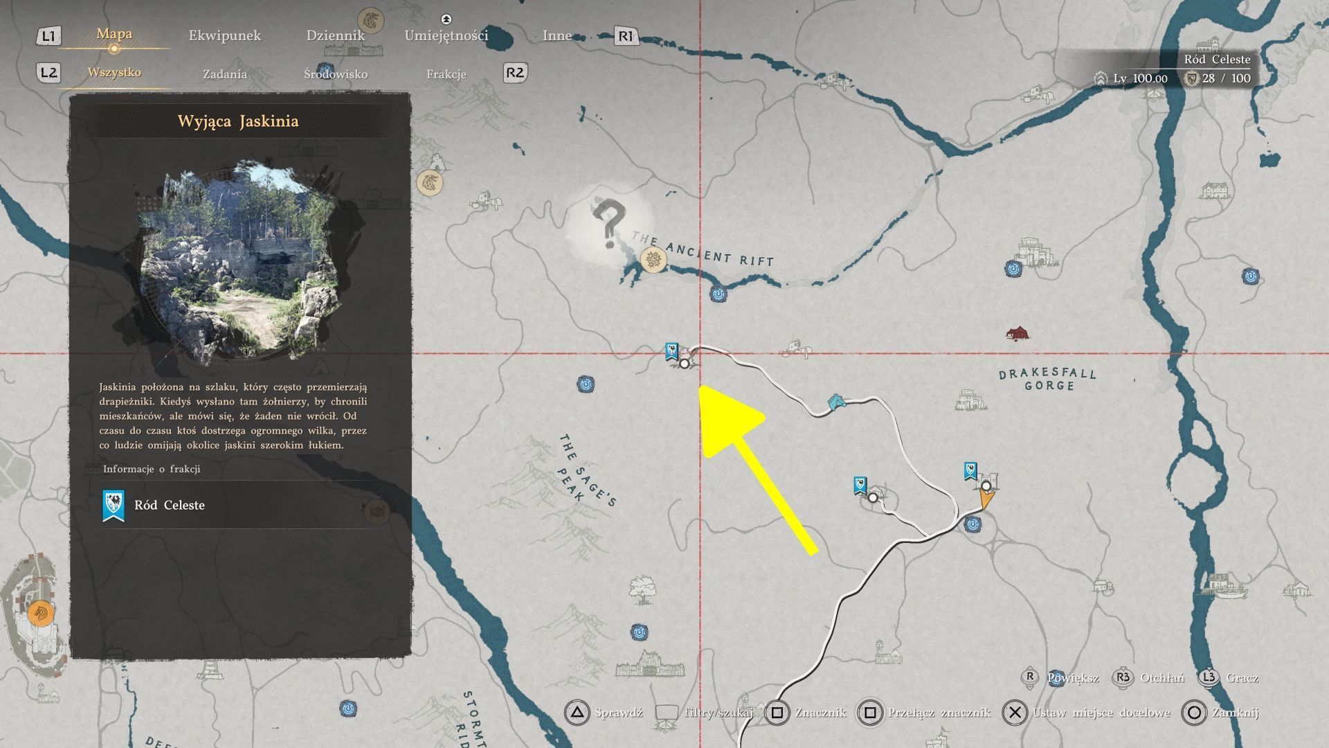 - Udajcie się do lokacji Wyjąca Jaskinia w północnym Hernand, czyli w pobliże miejsca, w którym wcześniej walczyliście z czarnym wilkiem.