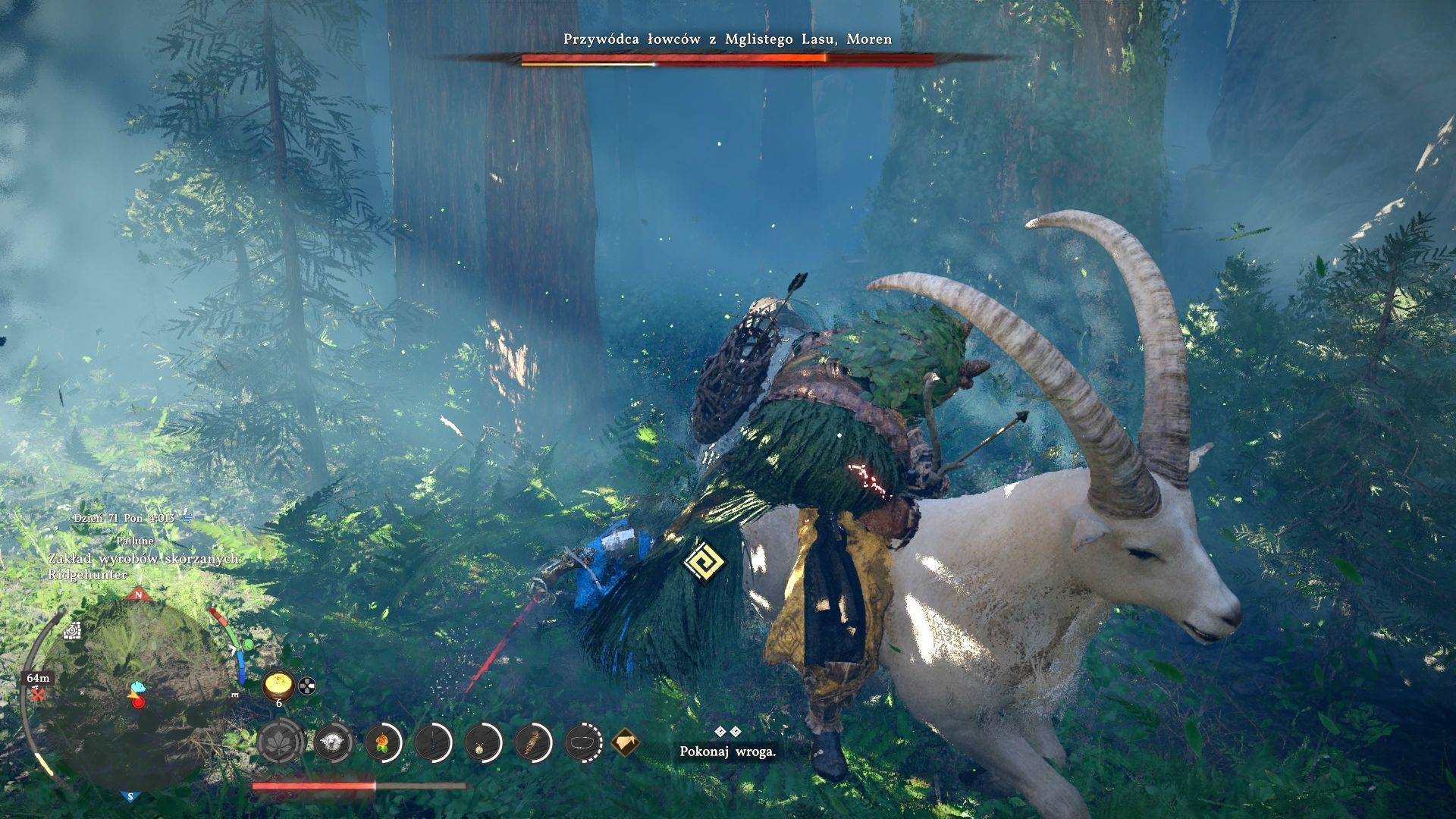 - W ramach konfrontacji z przywódcą łowców musicie dwukrotnie pokonać Morena, który podróżuje po lesie na grzbiecie koziorożca.