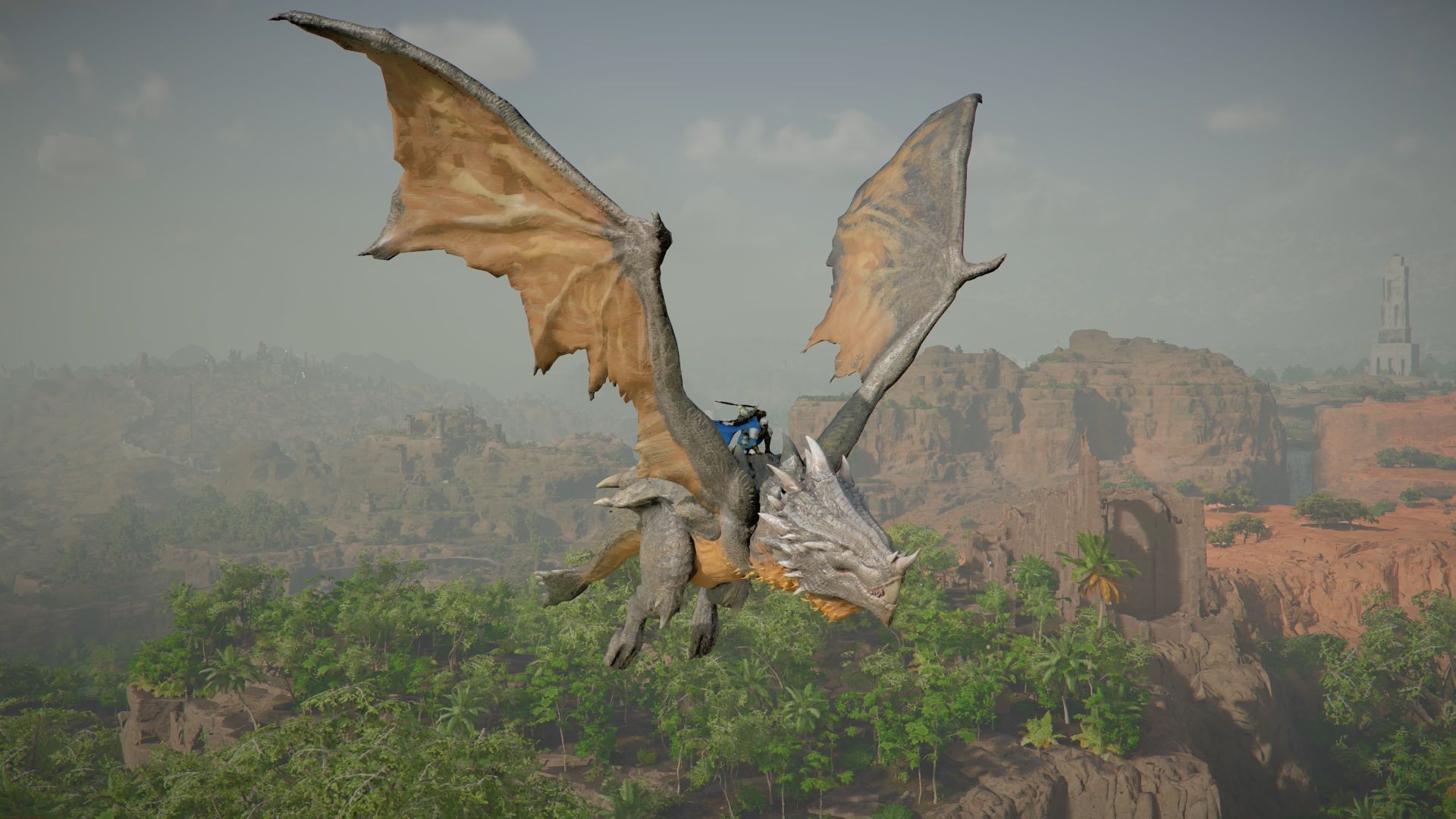 - Ogromną zaletą smoka jest to, że możecie używać kul ognia i ognistego oddechu. Bardzo przydaje się to do atakowania celów naziemnych, w tym do osłabiania wrogich lokacji. Pamiętajcie jednak, że smok ma swój pasek zdrowia i może otrzymywać obrażenia. Po tym jak go utracicie lub opuścicie spodziewajcie się długiego czasu oczekiwania (cooldownu) zanim gra pozwoli go ponownie przyzwać.