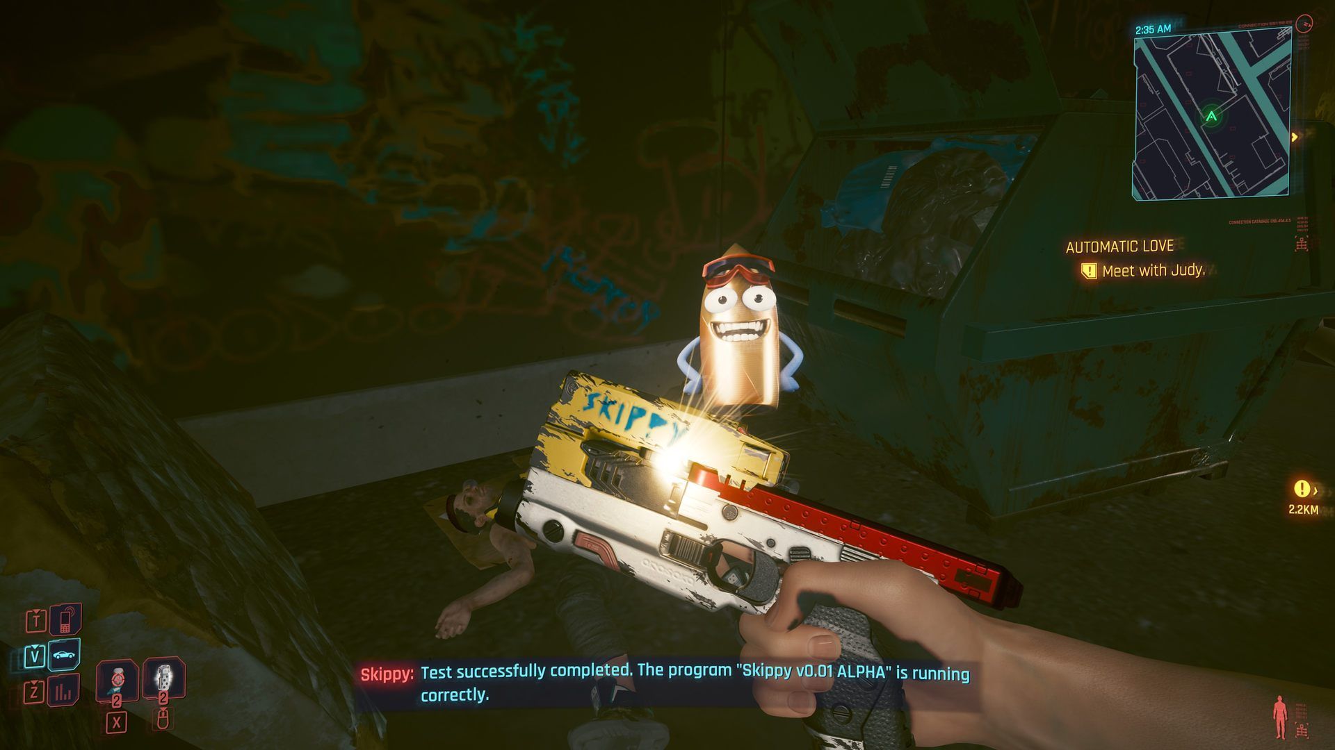 Zrestartuj całą misję. Cofnij się z zapisem. Jeszcze jak dojeżdżacie do miasta. Tylko to pomaga. Ten skrypt zaskoczy. Nie zapomnij też zeskanować trzy dowolne urządzenia elektryczne za pomocą Kiroshi. Jest ich więcej.