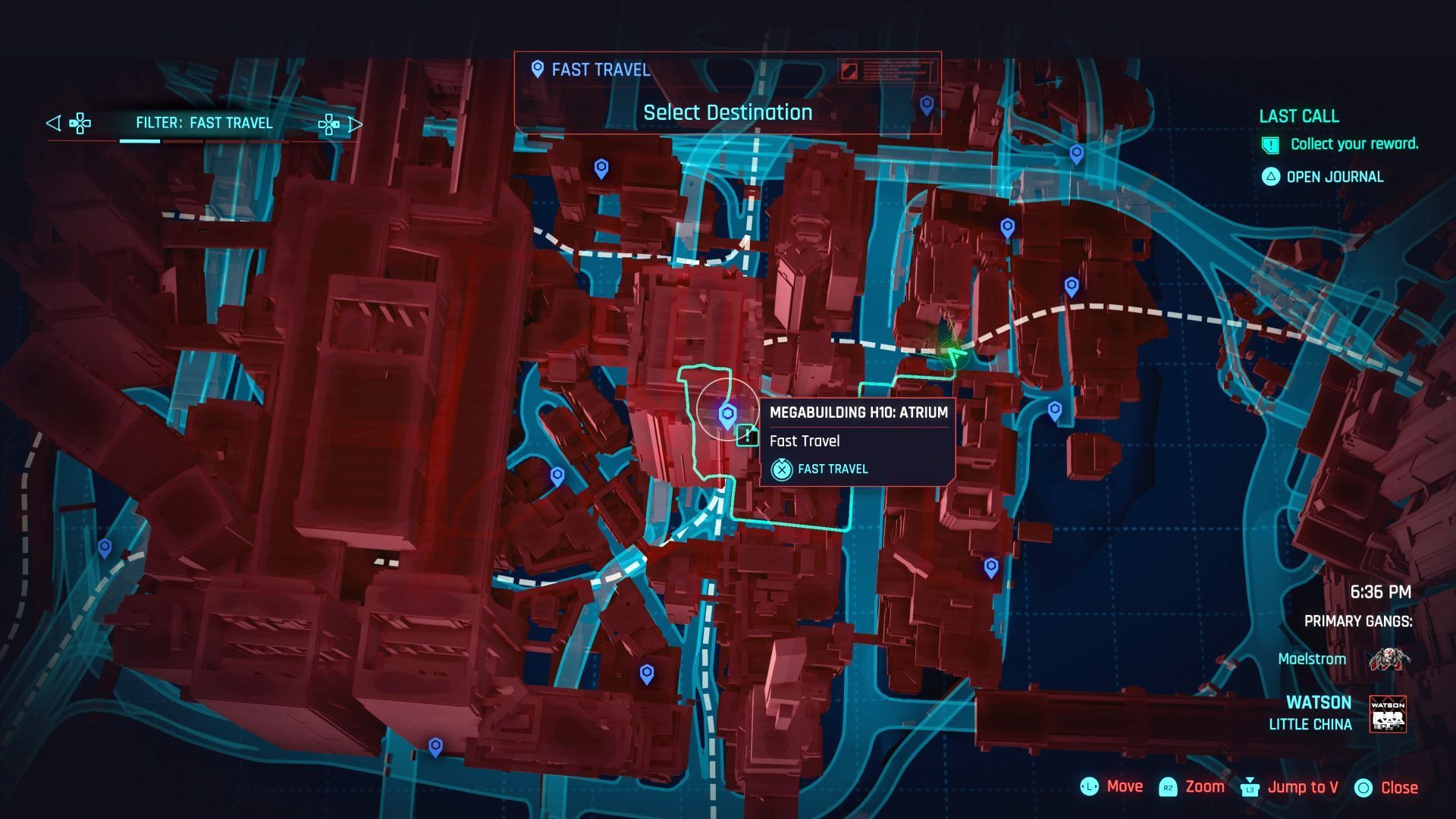 Miejscem docelowym może być wyłącznie któryś z innych odkrytych punktów szybkiej podróży. Nie możecie przenieść się do dowolnego znacznika na mapie. Na szczęście punkty fast travel są gęsto porozmieszczane po mapie Night City i nie trzeba tracić dużo czasu na dotarcie do faktycznego celu wędrówki.