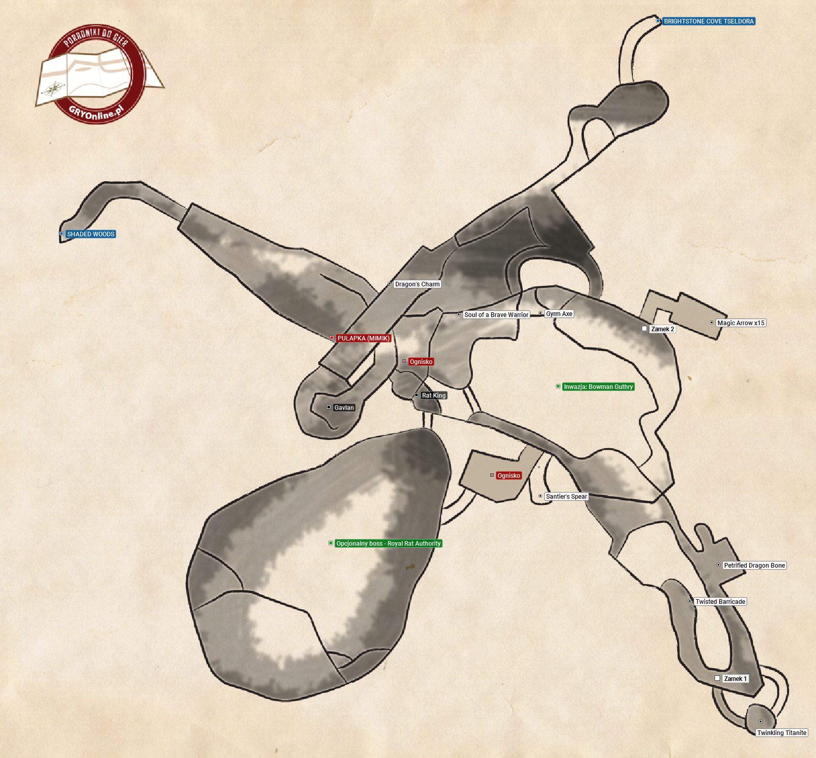 Zwiedź lokację zabijając po drodze krasnoludy i zbierając przedmioty. Znajdź w ścianie otwarte przejście i skorzystaj z niego. W kolejnym pomieszczeniu rozpal ognisko. Za mgłą czeka na ciebie boss Royal Rat Authority.