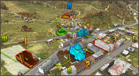 Rozpocznij swoją wycieczkę od straży pożarnej na zachodzie. Łupiąc to miejsce śpiesz się tak samo, a może nawet bardziej niż w przypadku Czerno, ponieważ z każdej strony będziesz odsłonięty na ogień nieprzyjaciela.