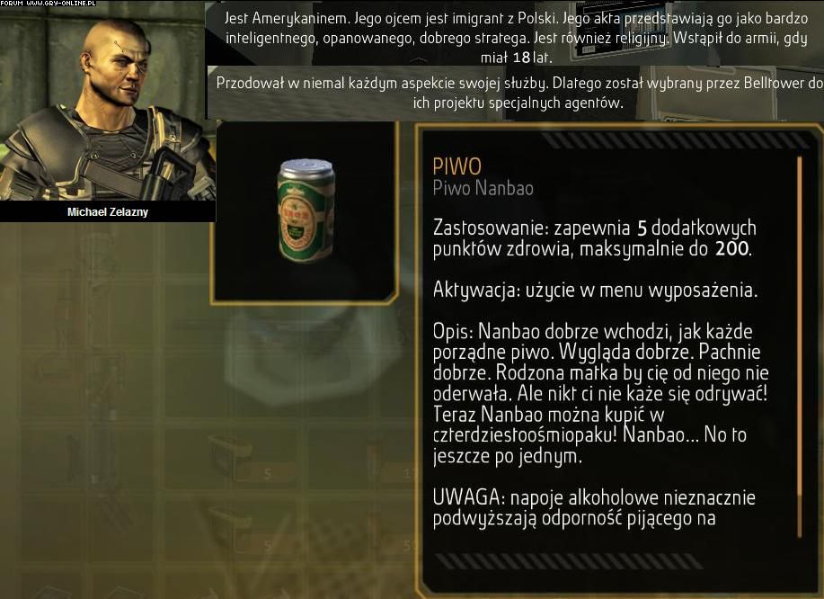 - wypuszczenie Zelaznego (jedna z najciekawszych postaci w grze: obok Tong Si Hunga, telewizyjnej AI i drugoplanowego Szewczenki), chętnie postawiłbym kolesiowi o polskich korzeniach kilka piw Nanbao. Taki 48-pak na dwóch? Cóż to jest ;)