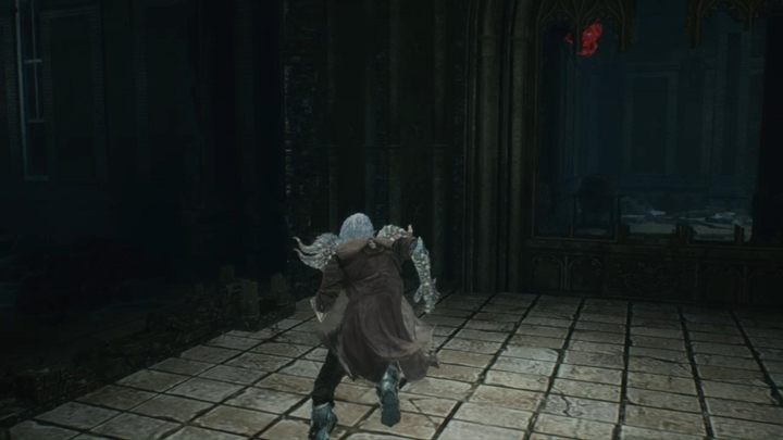 Kieruj się teraz w dół budynku i zeskocz na poziom poniżej. Na dole znajdziesz trochę kryształów i dwa skrzepy z krwią - zniszcz je. Na półce znajdziesz również niebieski fragment kuli, który warto przygarnąć.