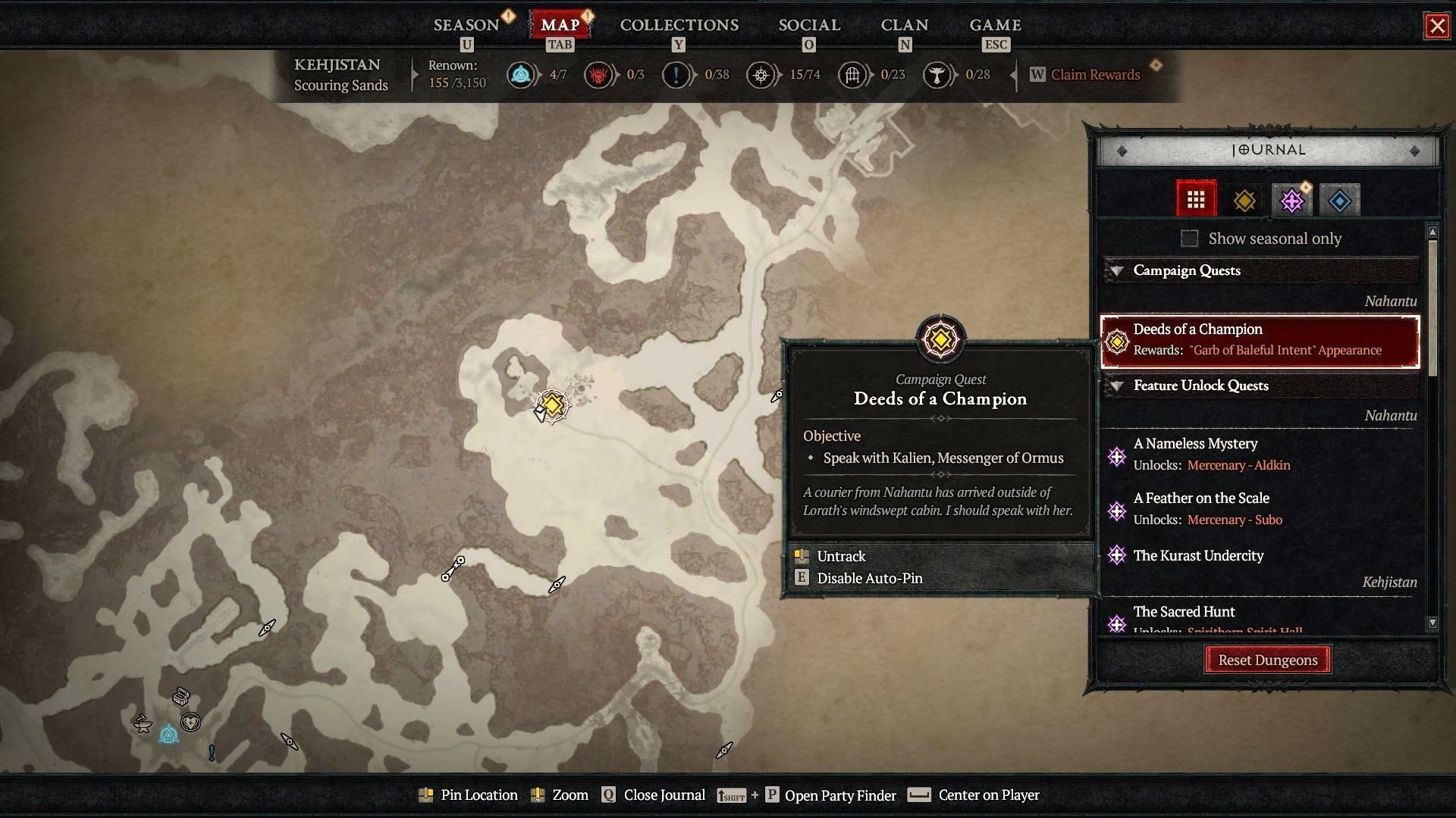 - W ramach Czempiońskich wyczynów możecie zająć się m.in. przejściem zadań zrekrutowania kolejnych najemników (o ile ich wcześniej nie rozegraliście), odwiedzeniem specjalnego lochu Podmiasto w Kurast, przejęciem twierdzy Kiszuk w Nahantu, odblokowaniem mechaniki szeptów i upiornych przysług czy zaliczeniem pierwszego Piekielnego Przypływu. Nie możecie niestety swobodnie ich wybierać z listy zadań. Musicie je poznawać w kolejności narzuconej przez autorów.