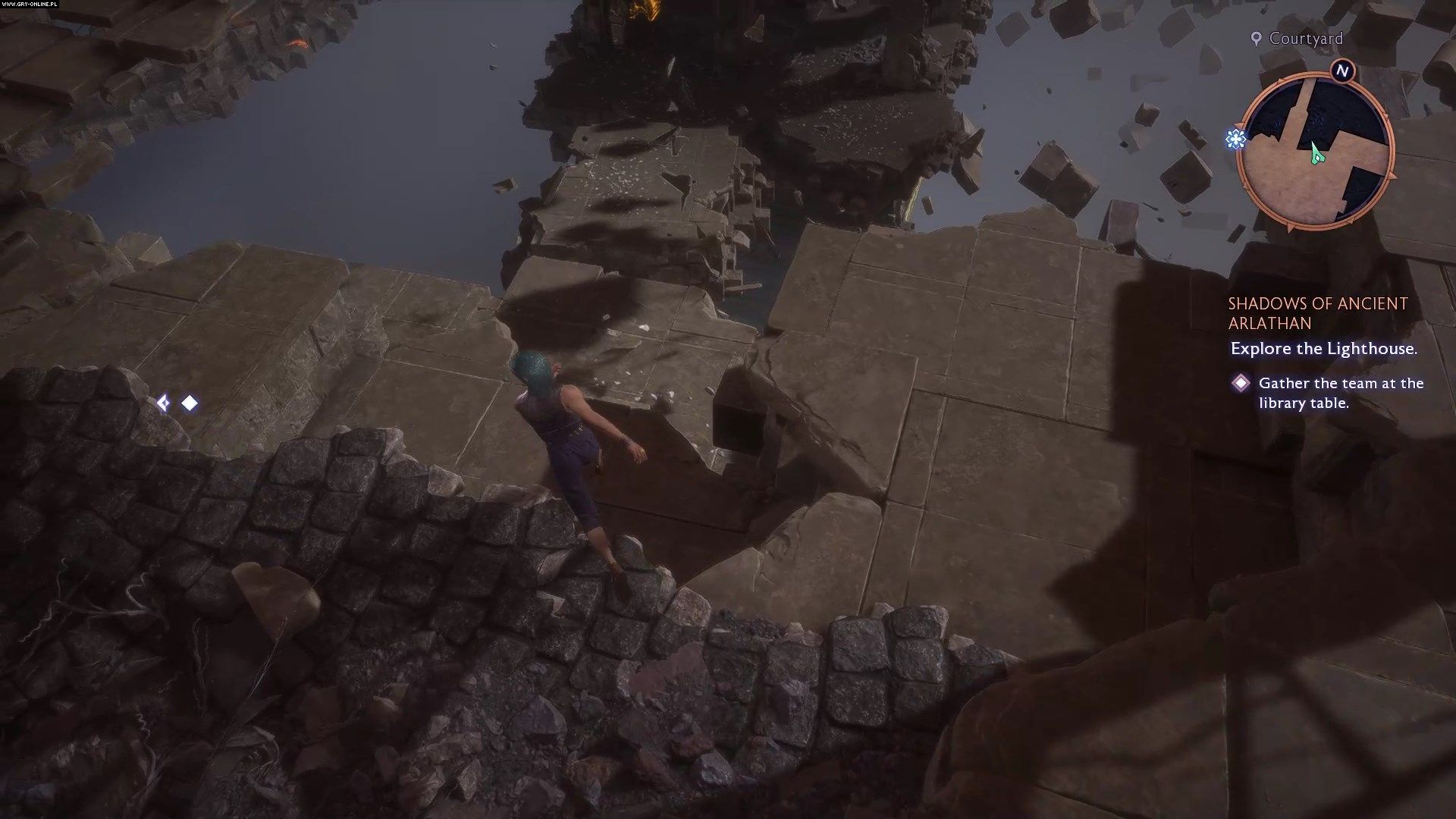 Nie wracajcie na parter portalem. Po naprawie astrolabium przeskoczcie przez balustradę i zeskoczcie z balkonu. W ten sposób zdobędziecie osiągnięcie Nostalgiczna podróż.