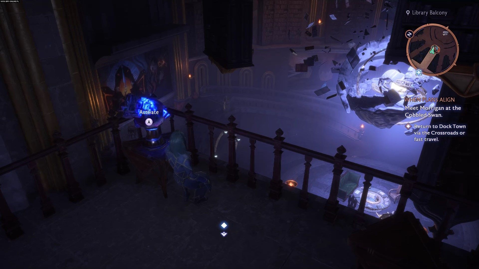Na balkonie wejdźcie w interakcję z niebieską kulą by naprawić astrolabium. Permanentnie obniża to koszt dokonywania ulepszeń w warsztacie Opiekuna. Możecie teraz wejść także do uprzednio zamkniętego pokoju na parterze, naprzeciw pokoju muzycznego, gdzie znajdziecie nieco łupów.