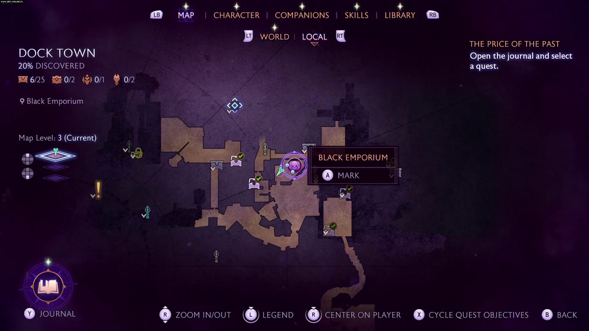 Zadanie polegające na odnalezieniu sklepu Czarne Emporium otrzymacie na jednym z późniejszych etapów gry (po skompletowaniu pełnej drużyny). Zwracajcie uwagę na moment, gdy obok ikony Opiekuna (rezydującego na dziedzicu Latarni) pojawi sie ikona wykrzyknika.