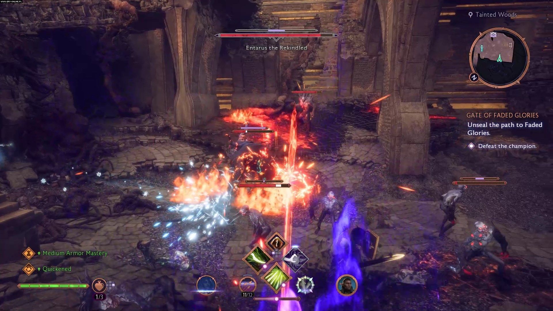 Trzecie wspomnienie kryje się za mini-bossem w lesie Arlathan - Entarusem. Jest to elitarny ogr, a walka z nim może okazać się wymagająca ze względu na ciasną arenę i zatrzęsienie zwykłych przeciwników. Jeśli zauważycie, że zadajecie mu mało obrażeń, pamiętajcie, że zawsze możecie wrócić później. Po zabiciu ogra zabierzcie esencję z jego zwłok, której możecie użyć by otworzyć zamknięte przejście na Rozdrożach.