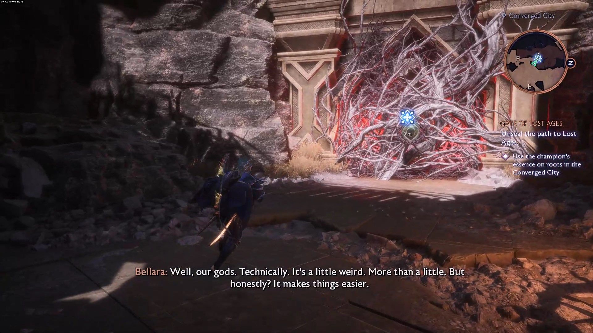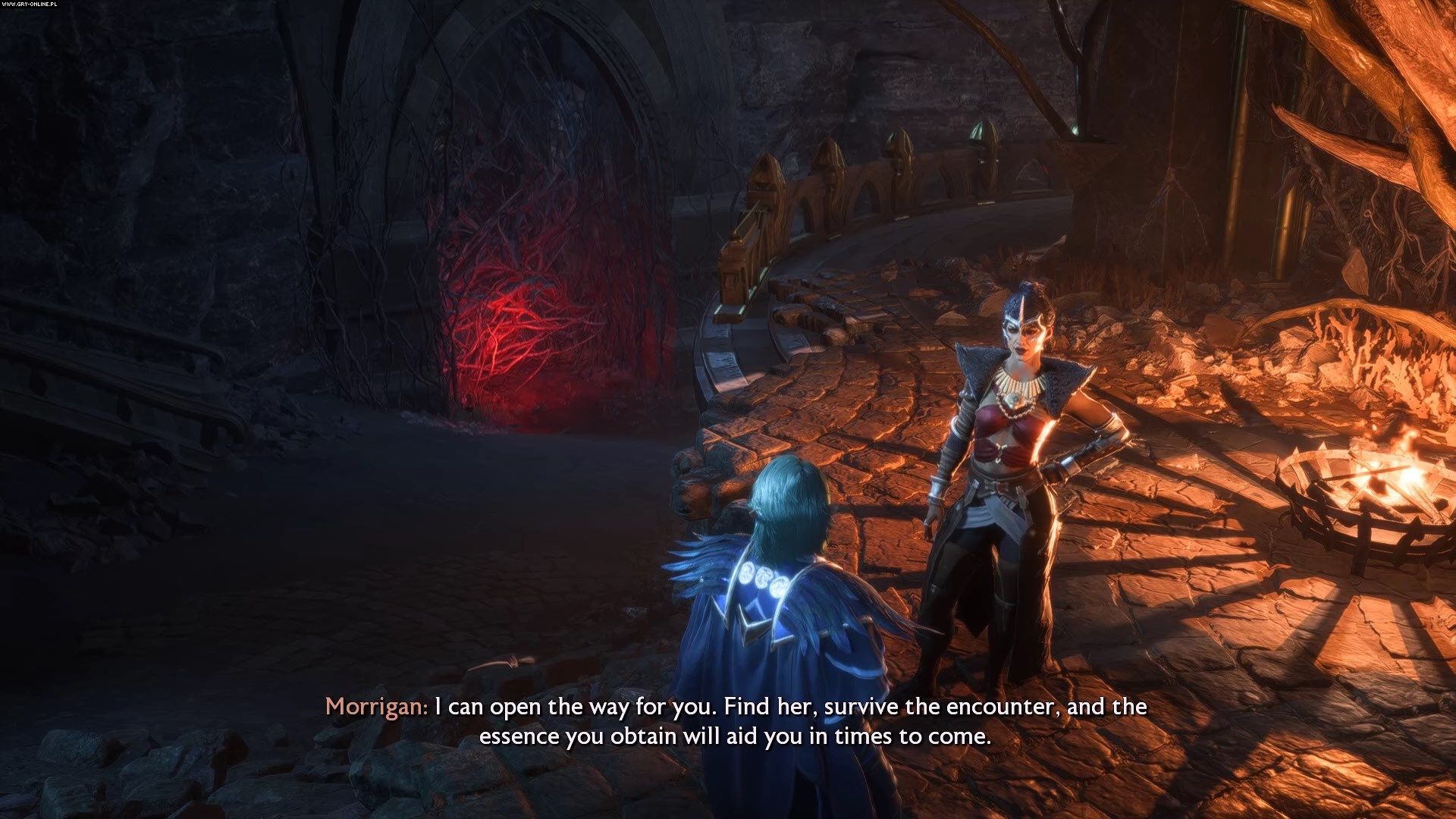 Drugie wspomnienie znajduje się w tym samym obszarze Rozdróż co eluvian do Hossberskich Mokradeł - możecie się tam najwcześniej udać w rozdziale szóstym. Ścieżka prowadząca do wspomnienia otoczona jest gałęziami i korzeniami tworzącymi prowizoryczne wrota.